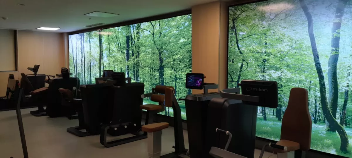 Общая площадь центра роботизированной реабилитации - 3600 кв.метров, тут работают три врача-физиотерапевта, травматолог, 4 невролога, 4 врача скорой помощи, 32 физиотерапевта-реабилитолога, 17 медсестёр, 2 масажиста, 20 санитарок и т.д.