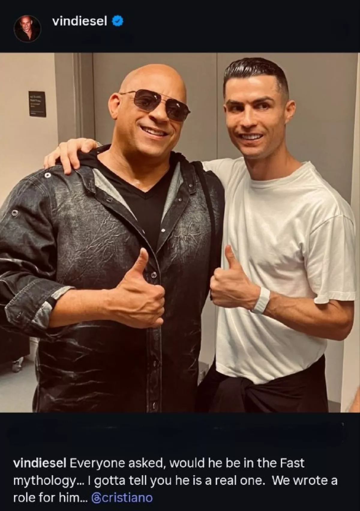 Американский актер и продюсер Вин Дизель сообщил, что для нападающего сборной Португалии и саудовского «Аль-Насра» Криштиану Роналду подготовили роль в новом фильме франшизы «Форсаж».
