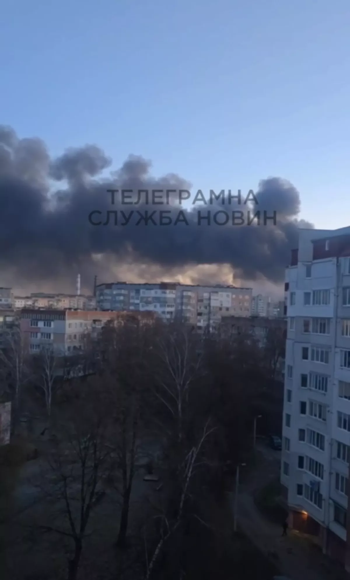 Россия атаковала Тернополь (город на западе Украины), над городом поднимается дым.