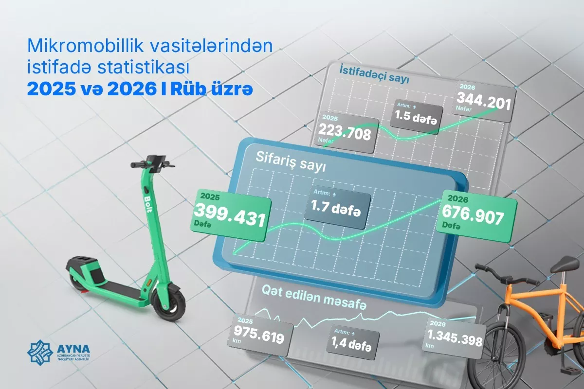 Агентство наземного транспорта Азербайджана (AYNA) представило статистику роста поездок средств микромобильности (велосипедов и скутеров) с начала 2026 года.