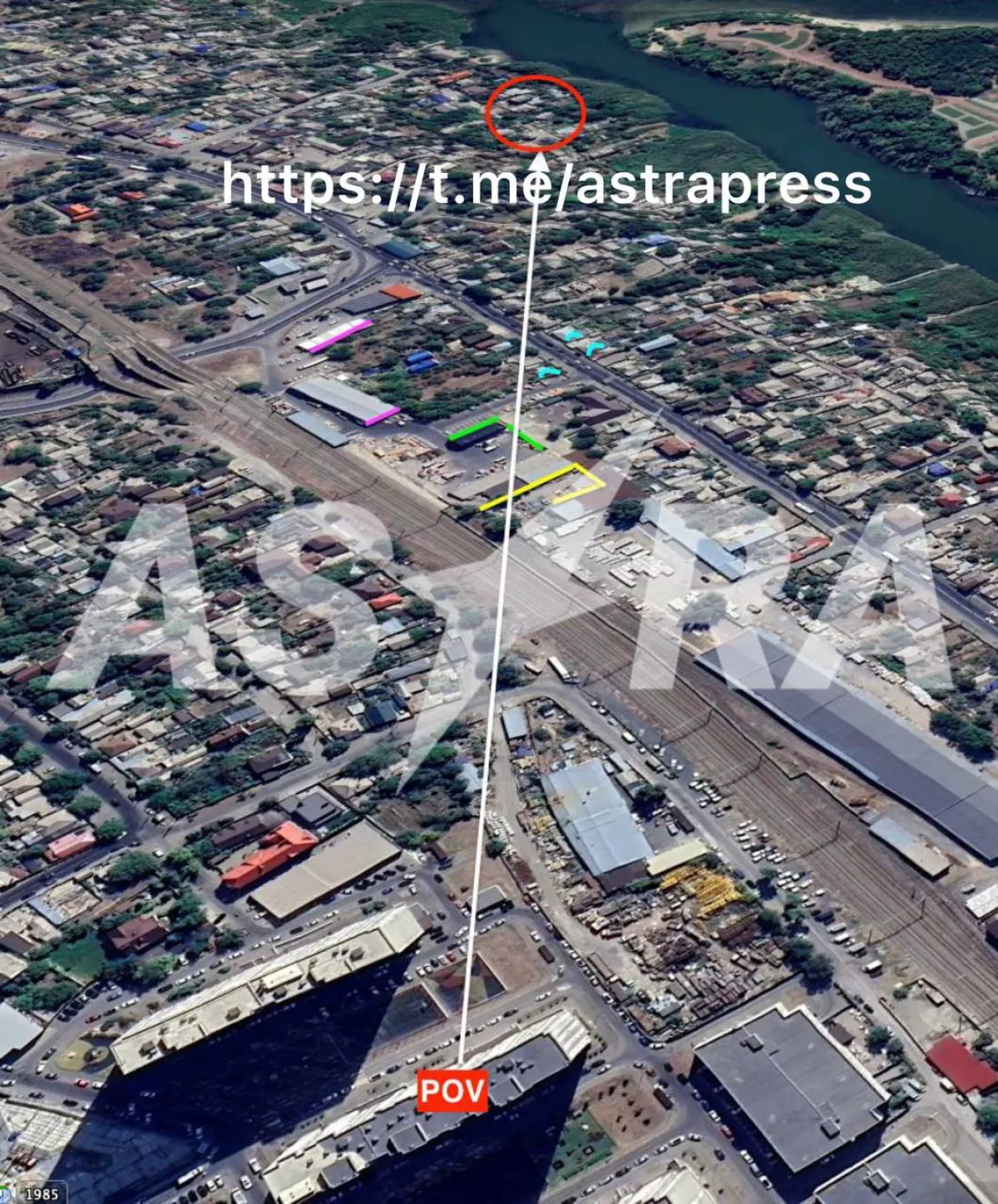 Украинский проект Exilenova+ опубликовал кадры с пожаром в Ростове-на-Дону после атаки. ASTRA геолоцировала кадры. Снимок сделан с Магнитогорской улицы с расстояния примерно 900 метров. Очаг пожара находится в частном секторе, ориентировочно в районе дома 128 по улице Набережной. В 2-х километрах от места пожара за Доном находится Ростовский филиал Новошахтинского завода нефтепродуктов, следует из OSINT-анализа ASTRA.