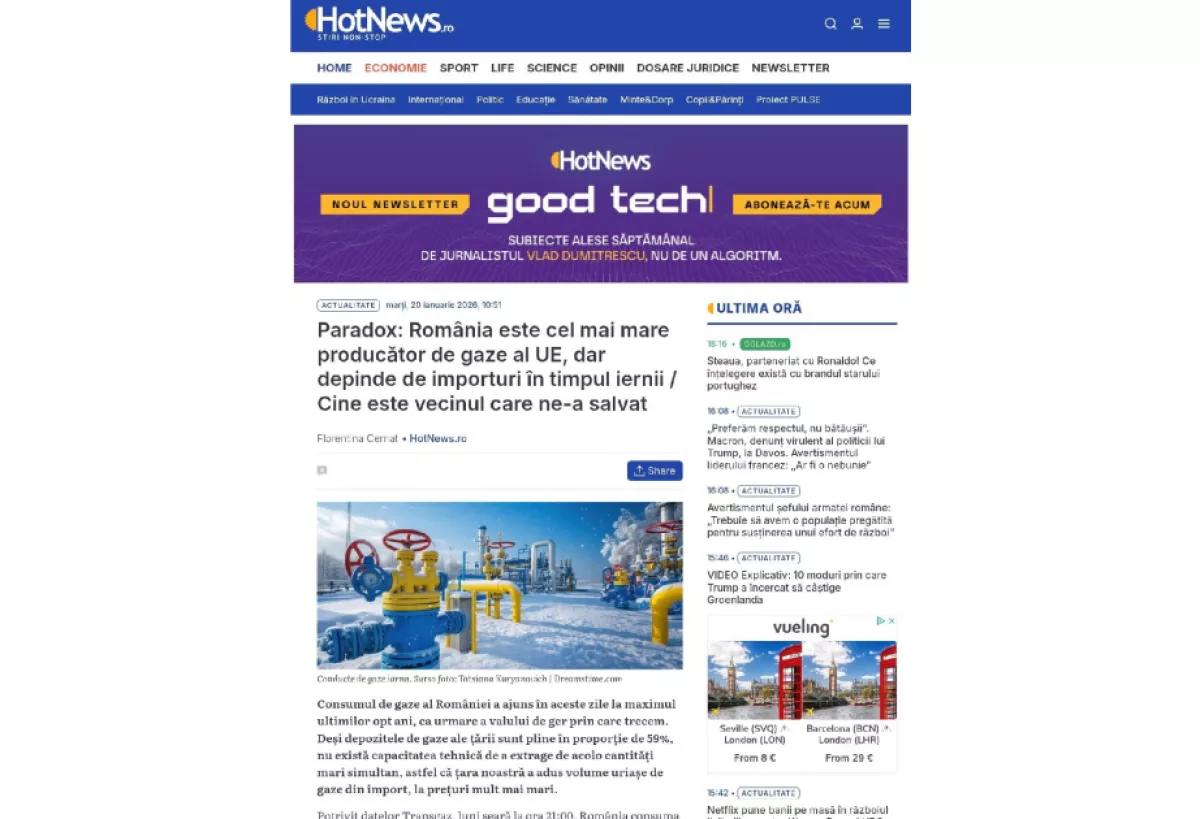 Аналитическая статья, опубликованная на HotNews.ro, одном из ведущих румынских новостных порталов, освещает поразительное противоречие в европейской энергетической повестке. Автор статьи, румынская журналистка Флорентина Чернат, специализирующаяся на экономических вопросах, анализирует этот парадокс в контексте региональных энергетических потоков и сотрудничества с соседними странами.