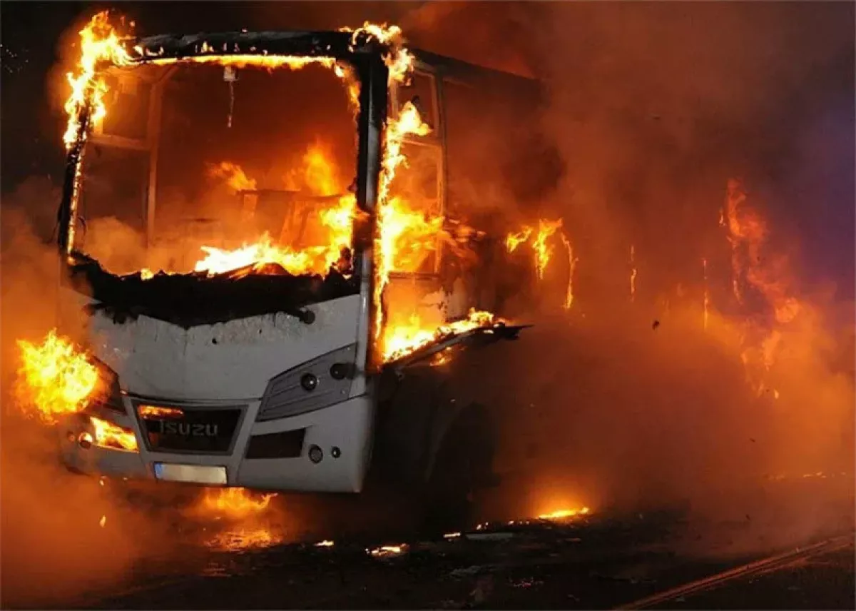 Рядом с Сарайским постом горит маршрутный автобус: ФОТО