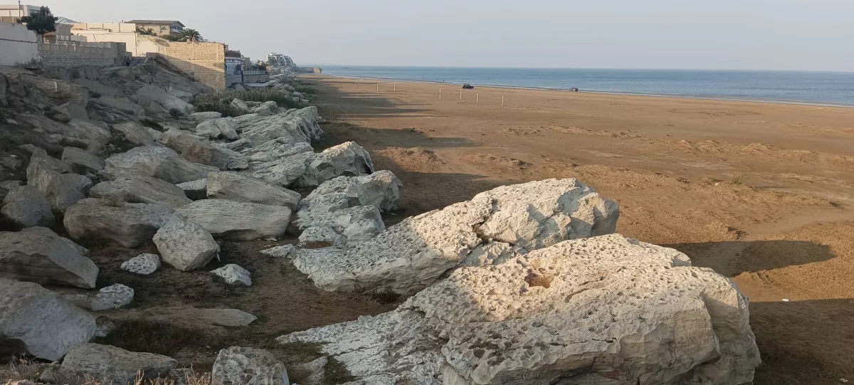 Один из жителей посёлка Бузовна Хазарского района Баку прислал в редакцию фотографию, запечатлевшую, как сильно за последнее время отошло от знаменитых скал посёлка Каспийское море.