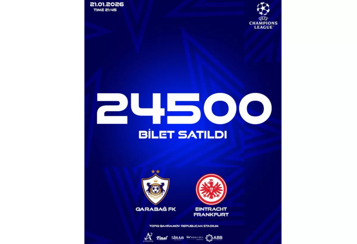 На матч «Карабах» (Агдам) и «Айнтрахт» (Германия), который пройдет в рамках VII тура общего этапа Лиги чемпионов УЕФА, уже продано 24500 билетов.