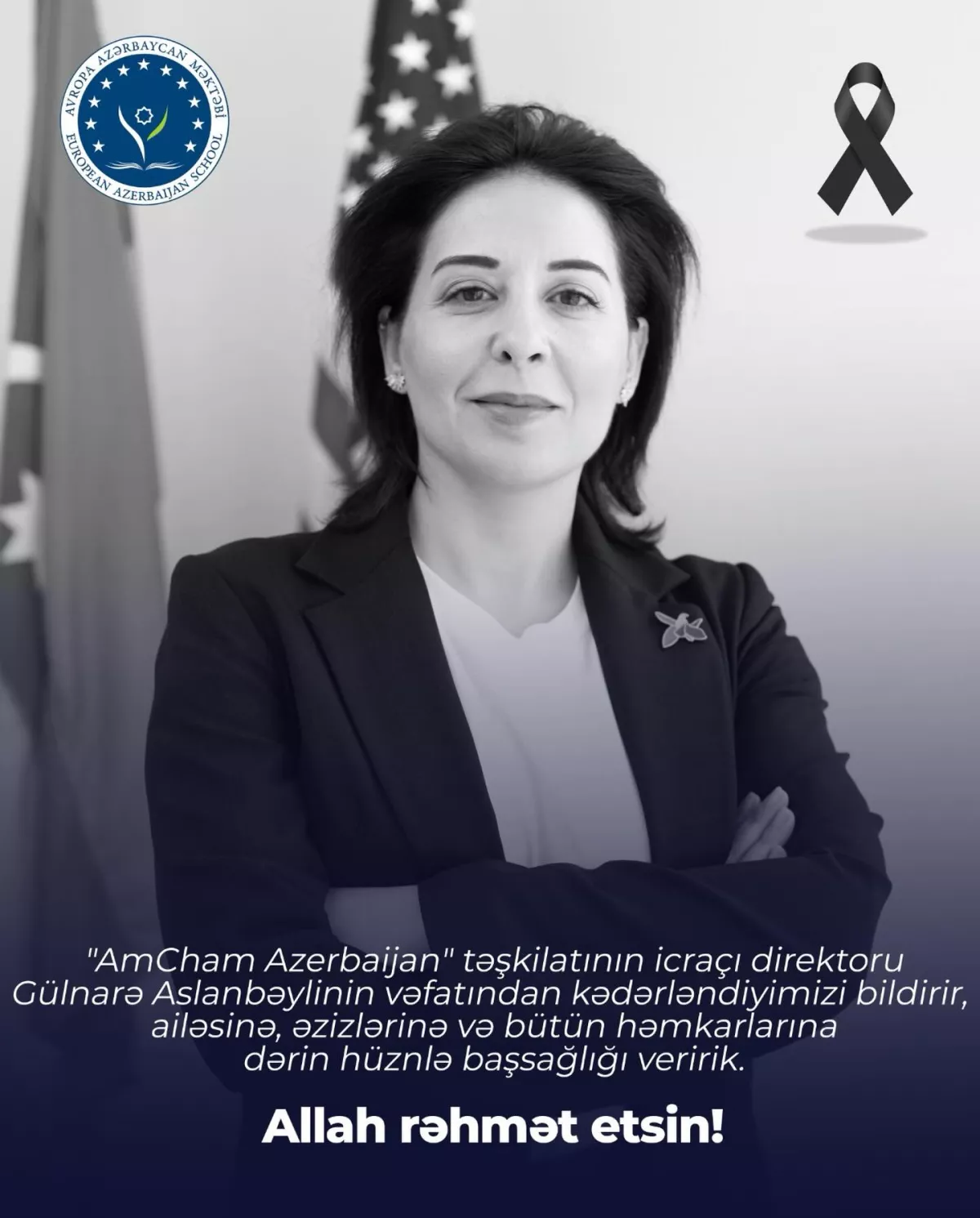 «Ее лидерство, мудрость и душевная личность оставили прочный след в нашей организации и на всех, кто имел честь работать с ней. Мы выражаем глубокие соболезнования ее родным, близким и коллегам в это непростое время. Память и вклад о ней останутся неизменной частью наследия нашей организации», - подчеркнули в AmCham Azerbaijan.