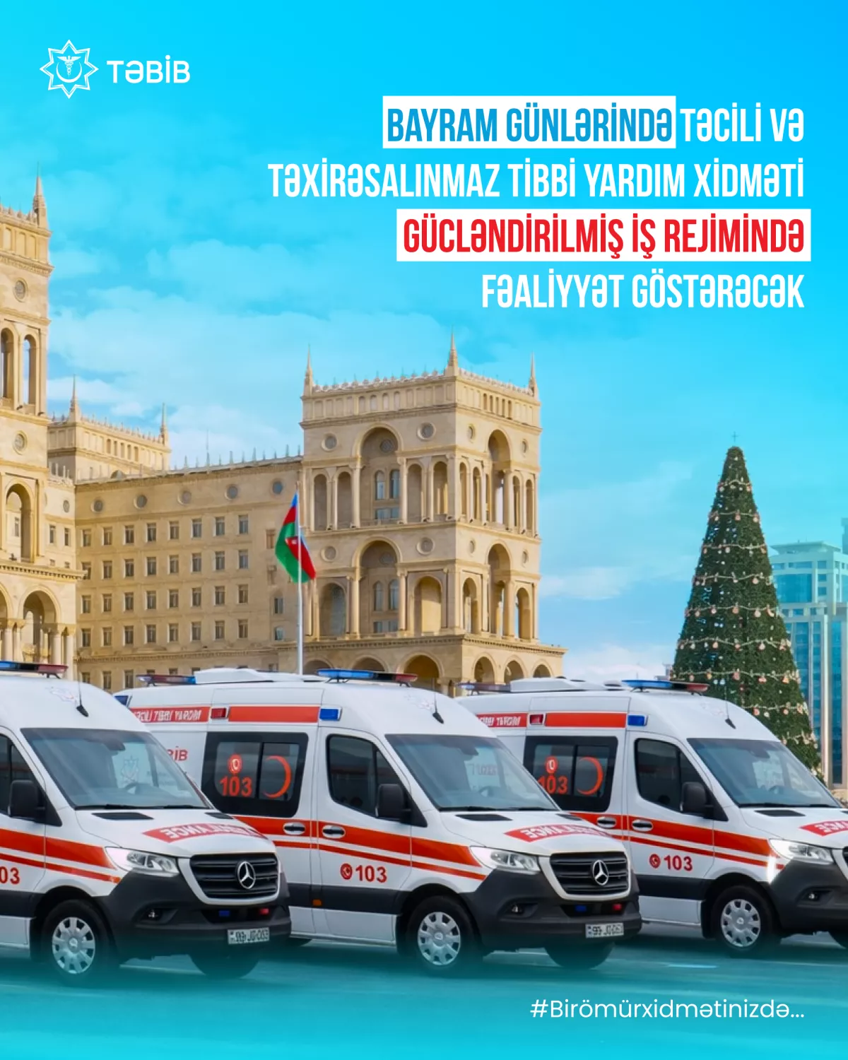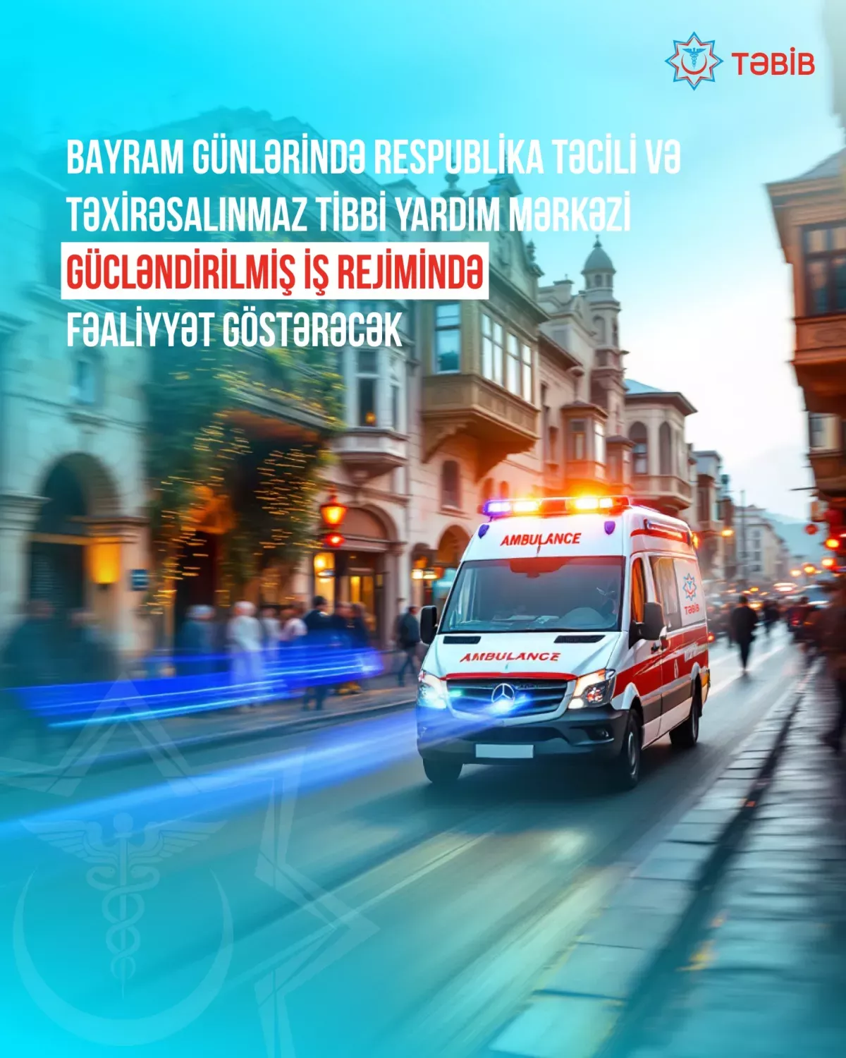 Республиканский центр скорой и неотложной медицинской помощи в праздничные дни в связи с Днем солидарности азербайджанцев мира и Новым годом будет работать в усиленном режиме.