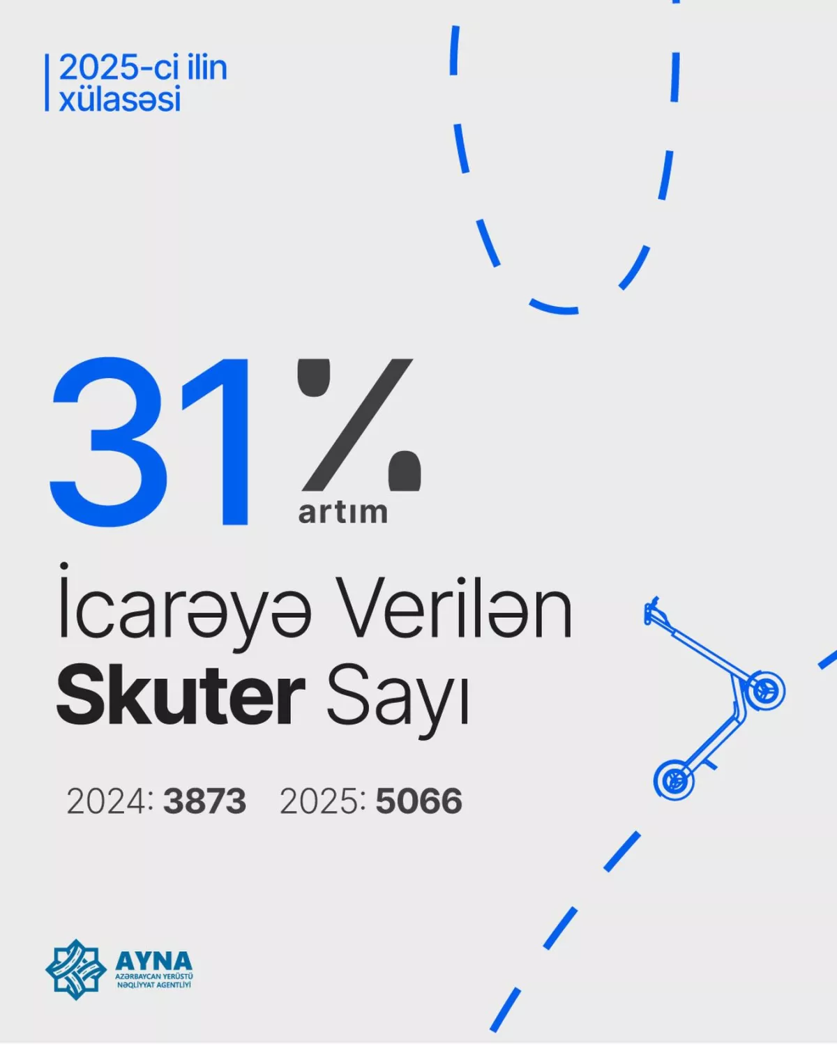 Как сообщили Caliber.Az в пресс-службе Агентства наземного транспорта АР (AYNA), по сравнению с 2024 годом в этом году количество скутеров, сдаваемых в аренду, выросло на 31%.