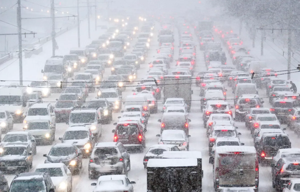 Снегопад в окрестностях Парижа вызвал рекордные пробки