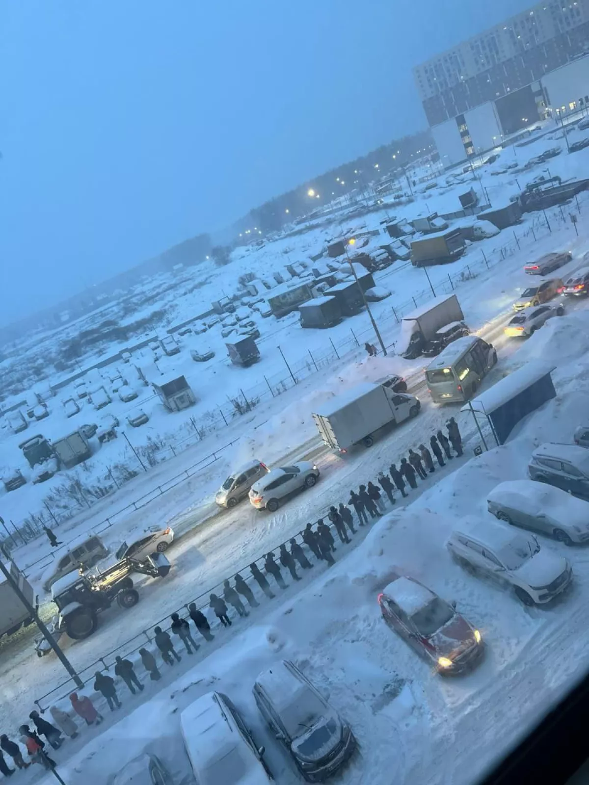 Снежный циклон парализовал общественный транспорт в Москве — люди вынуждены ходить на работу пешком.
