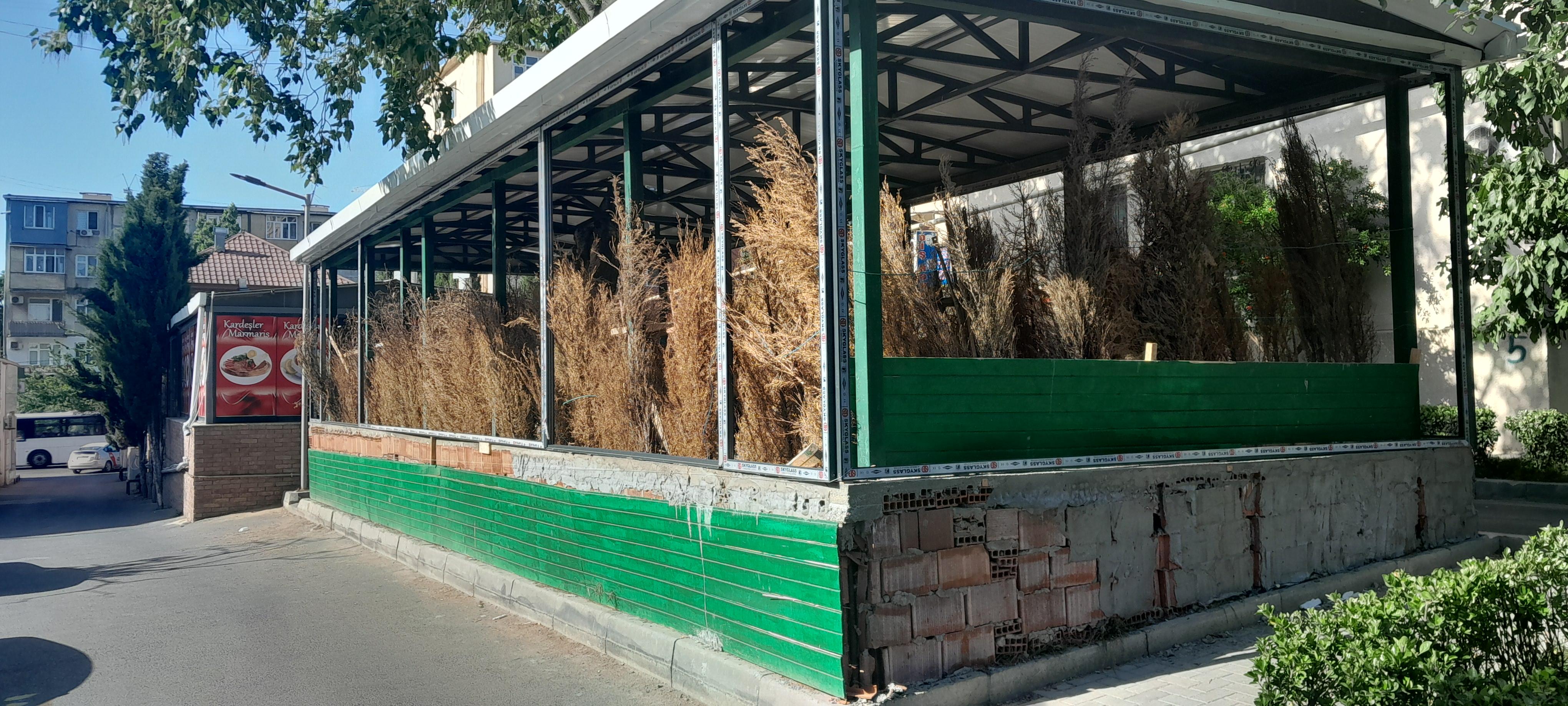 Минувшей ночью неизвестными была построена конструкция с крышей в части двора здания №5 на улице Гусеинбалы Алиева во 2-м микрорайоне Насиминского района Баку (близ станции метро «Мемар Аджеми»).