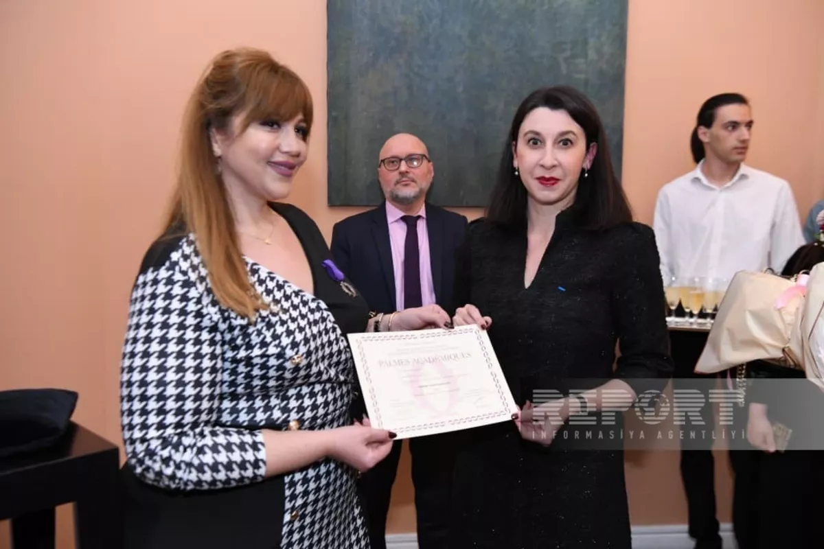 В рамках мероприятия преподавательнице французского языка Гянджинского государственного университета Вюсале Искендеровой была вручена награда Palmes académiques.