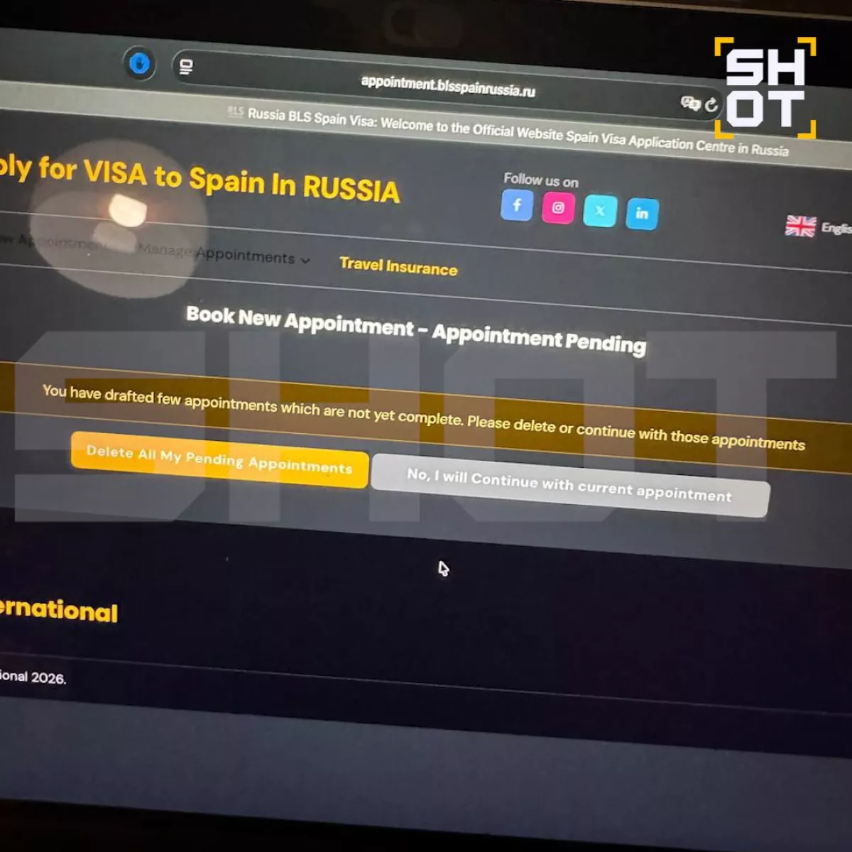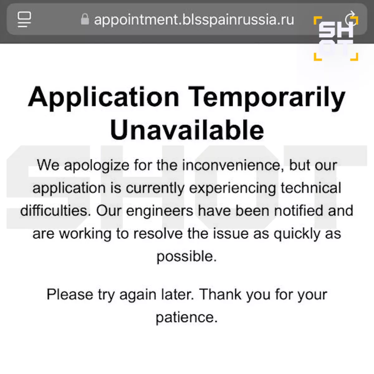 По данным SHOT, личный кабинет пользователя на сайте испанского визового центра «лежит» несколько дней. При этом единичные случаи сбоя фиксировали ещё две недели назад. Туристы не могут заполнить анкету на получение шенгена, отправить её и записаться на приём — их выкидывает из аккаунта. Из-за плохой работы сайта появилась большая очередь на получение документа. Срок ожидания может доходить до трёх месяцев вместо стандартных одного-двух.