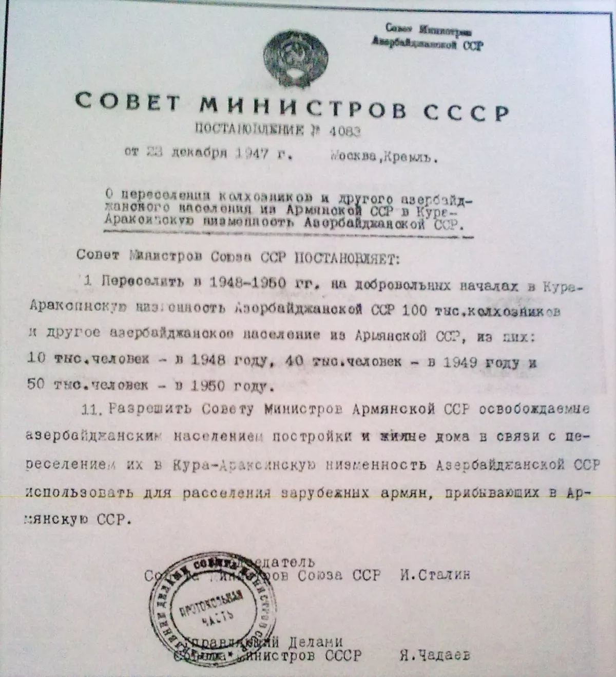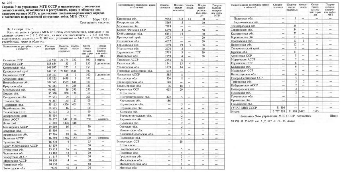 Тысячи семей лишались домов, имущества, будущего. В 1944 году на восток было насильственно вывезено около 873 тыс. человек, к октябрю 1948-го число депортированных достигло 2 млн 247 тыс., марту 1952-го – 2 млн 737 тыс. человек. Об этом говорится в документах Государственного архива Российской Федерации [см.: Ф. Р-9479. Оп. 1. Д. 597. Л. 13–15].