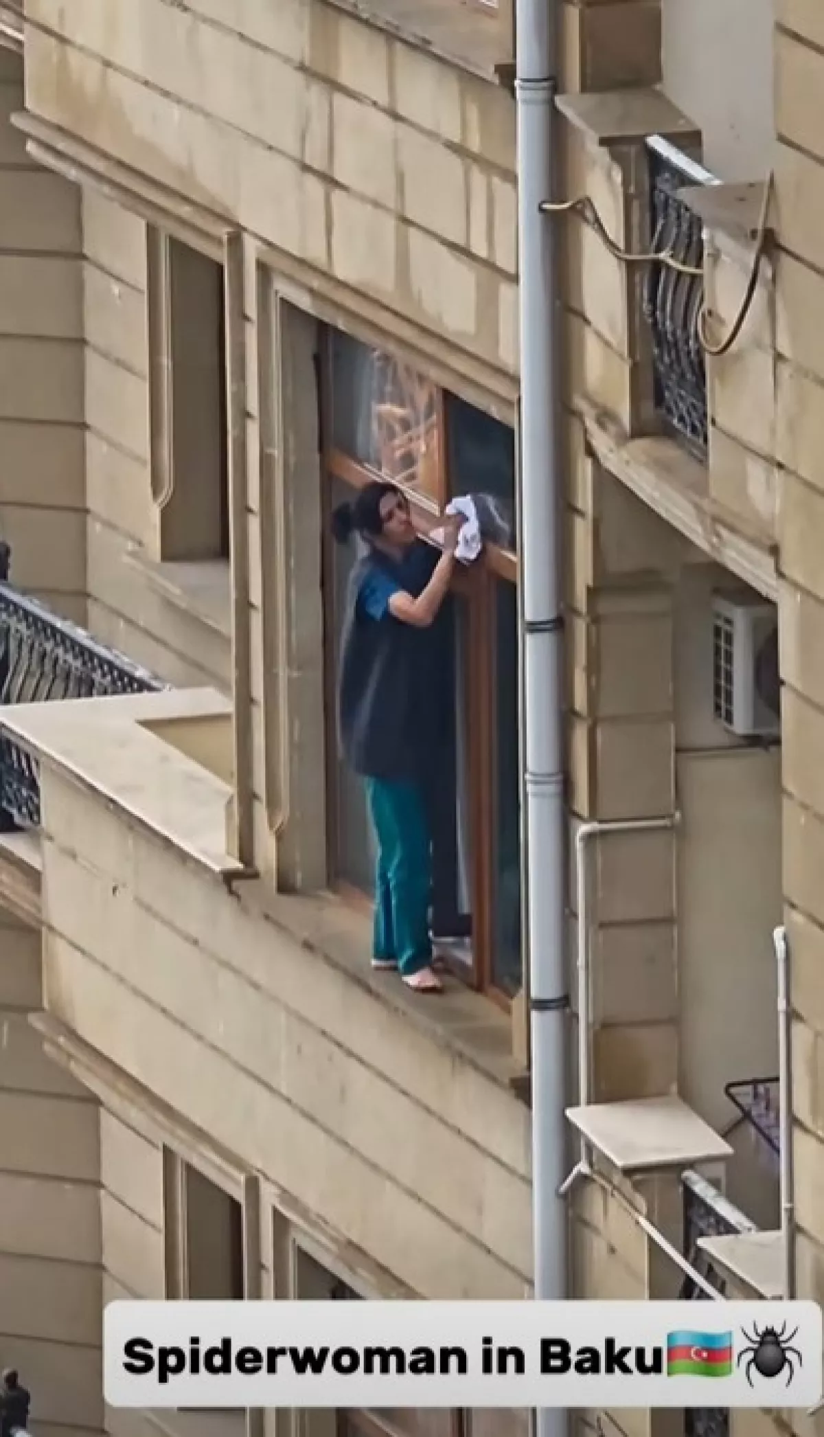 Как сообщает Caliber.Az, с балкона своего дома он заснял уборщицу, вытирающую наружные стекла квартиры на 12-м этаже здания напротив.
