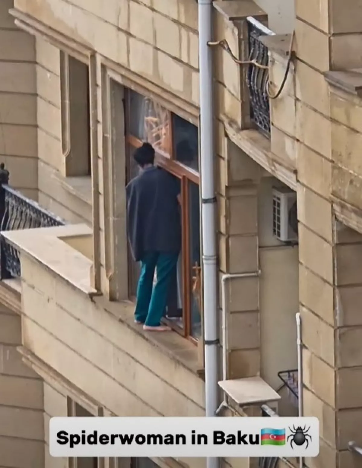 Spiderwoman на стене новостройки: бакинская уборщица уверовала в своё бессмертие Шокирующее ВИДЕО
