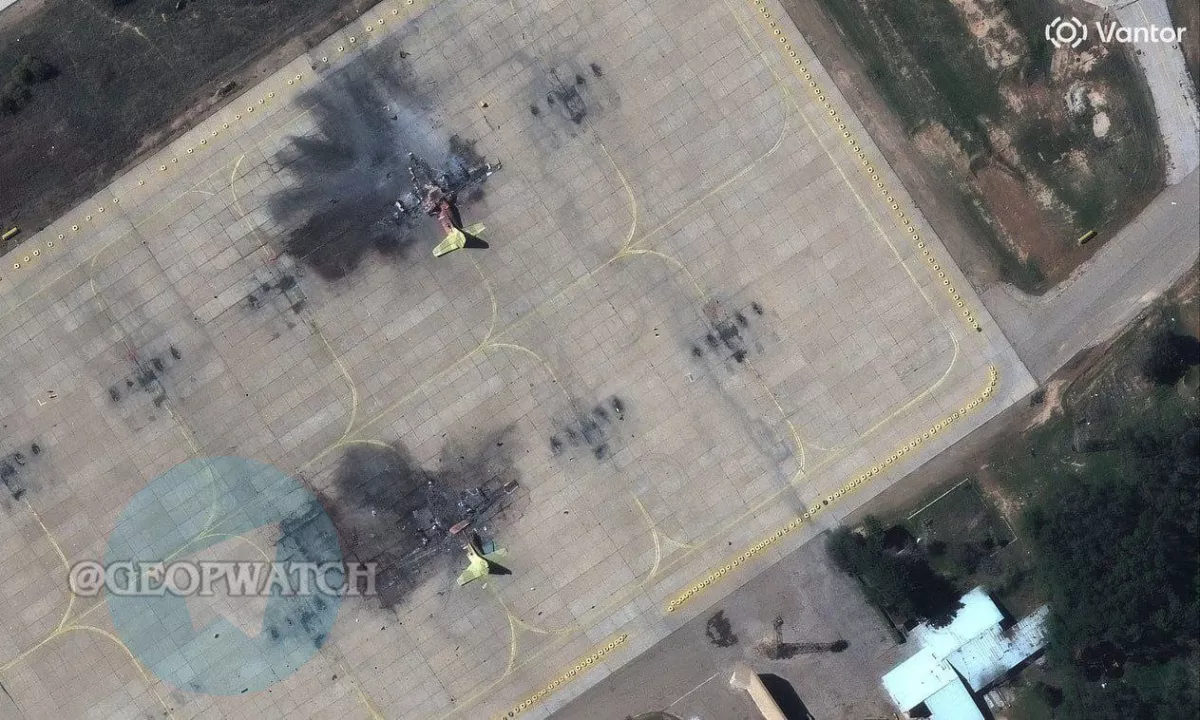 Снимки с космоса показывают, что в результате израильско-американского удара по аэродрому Шахид Дестриб в Ширазе было уничтожено как минимум пять иранских военных самолетов.