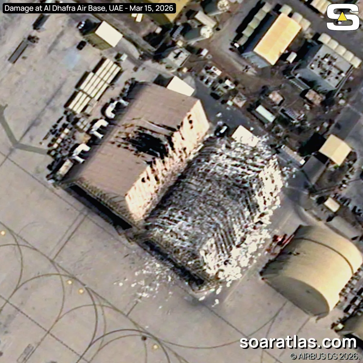 Новые спутниковые снимки подтверждают реальные повреждения на авиабазе Аль-Дафра в ОАЭ после иранских ударов.