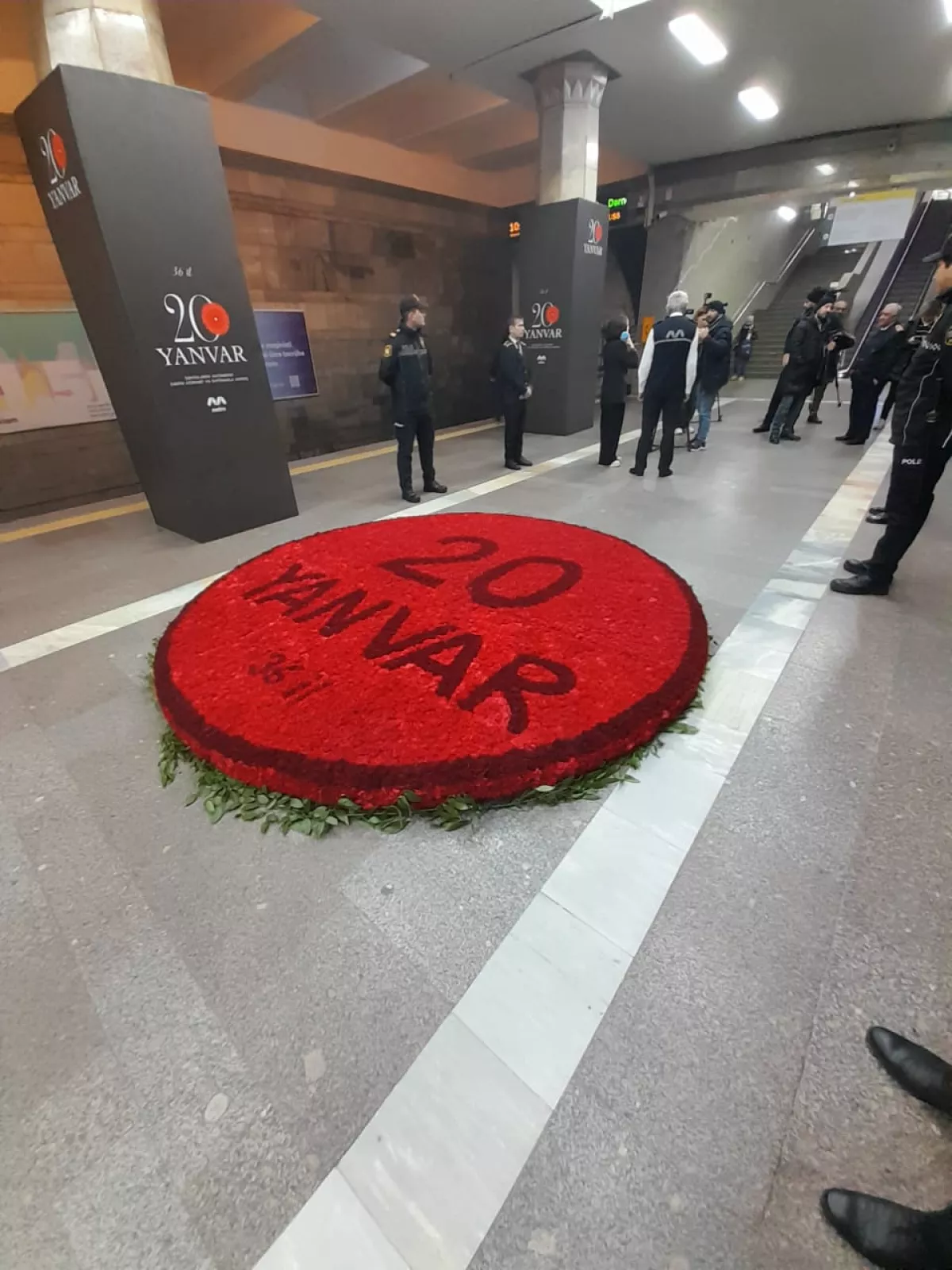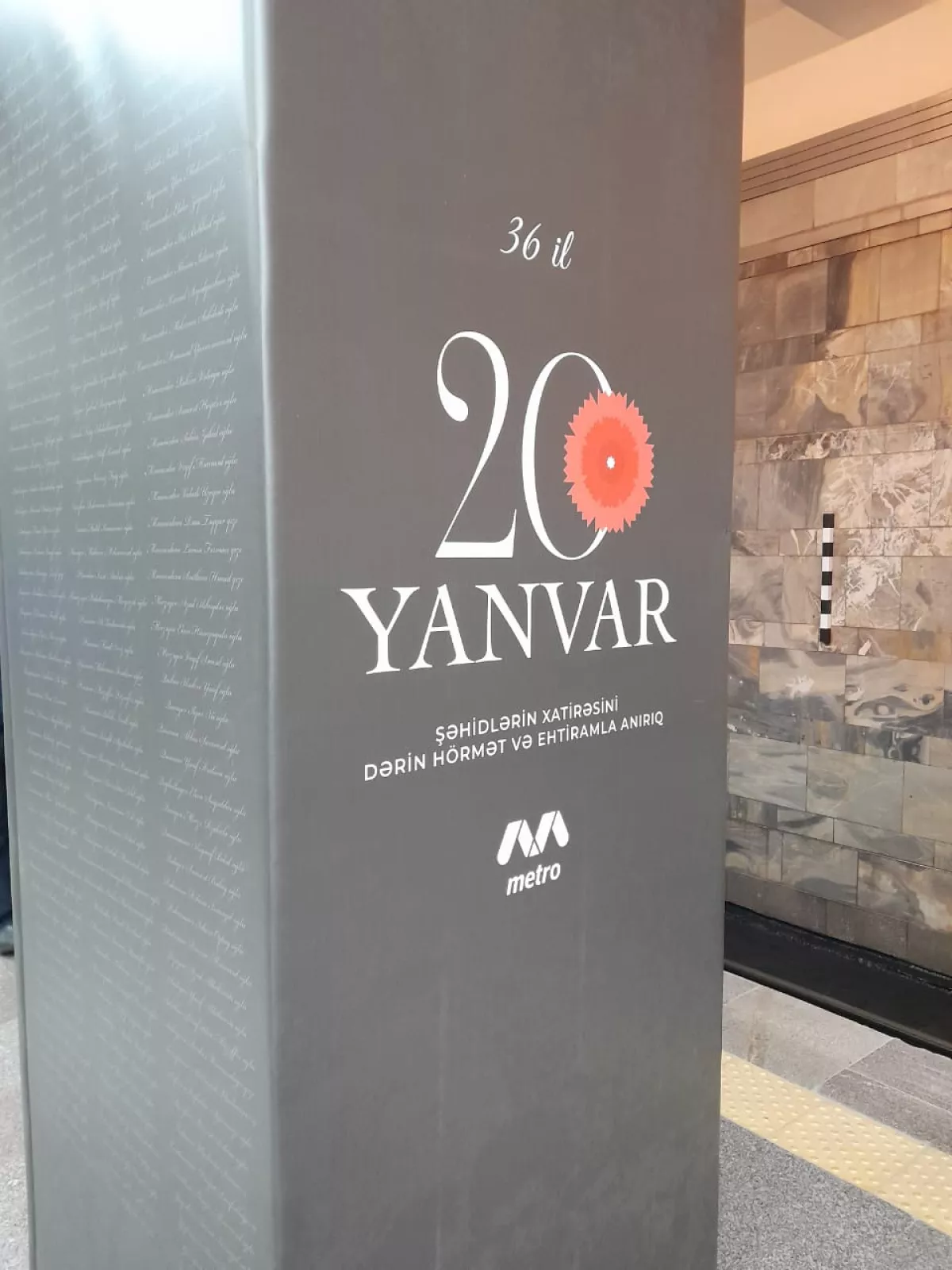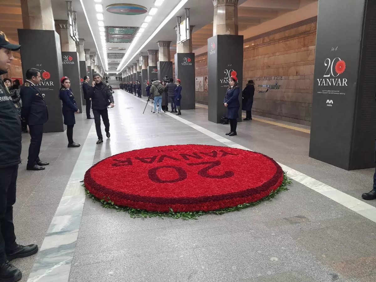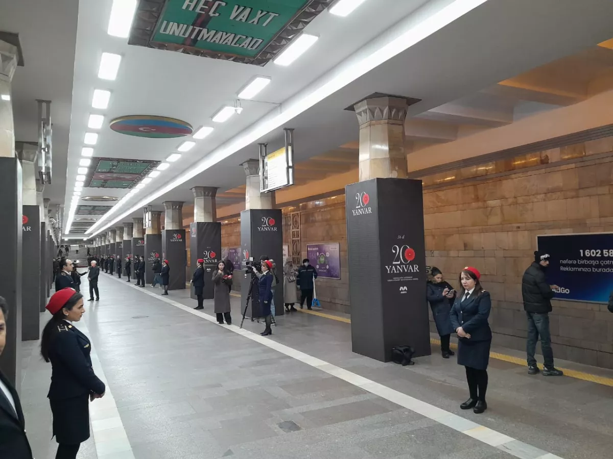 Как сообщает Caliber.Аz, в честь 36-летия январских событий 1990 года колонны станции убраны плакатами с именами погибших шехидов.