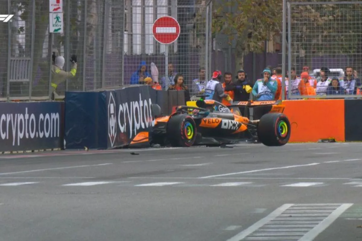 Как сообщает Report, пилот McLaren Оскар Пиастри врезался в защитный барьер в третьем повороте и разбил болид. Сам гонщик не пострадал и самостоятельно выбрался из болида.