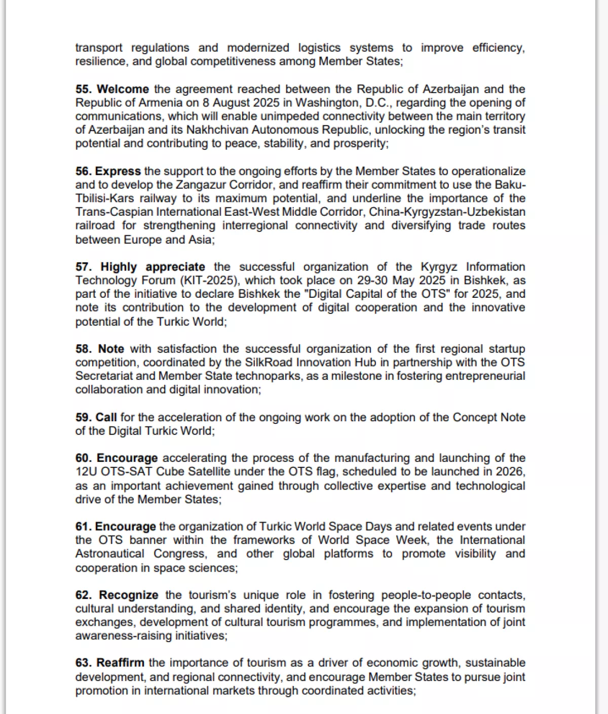 В декларации выражена поддержка результатов первого заседания стран-членов, проведенного 23 июля 2025 года в Стамбуле.