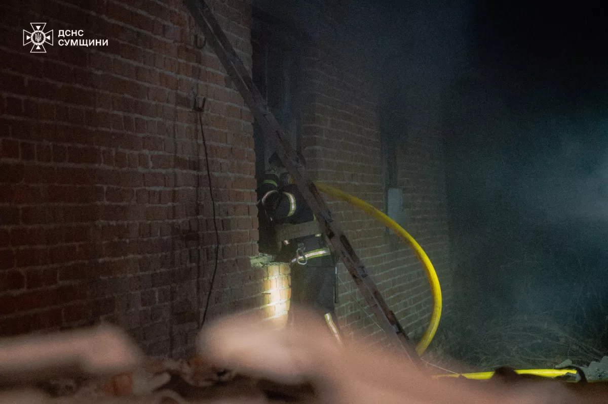 В результате российских ударов в Сумской области произошло возгорание двухэтажного нежилого здания.