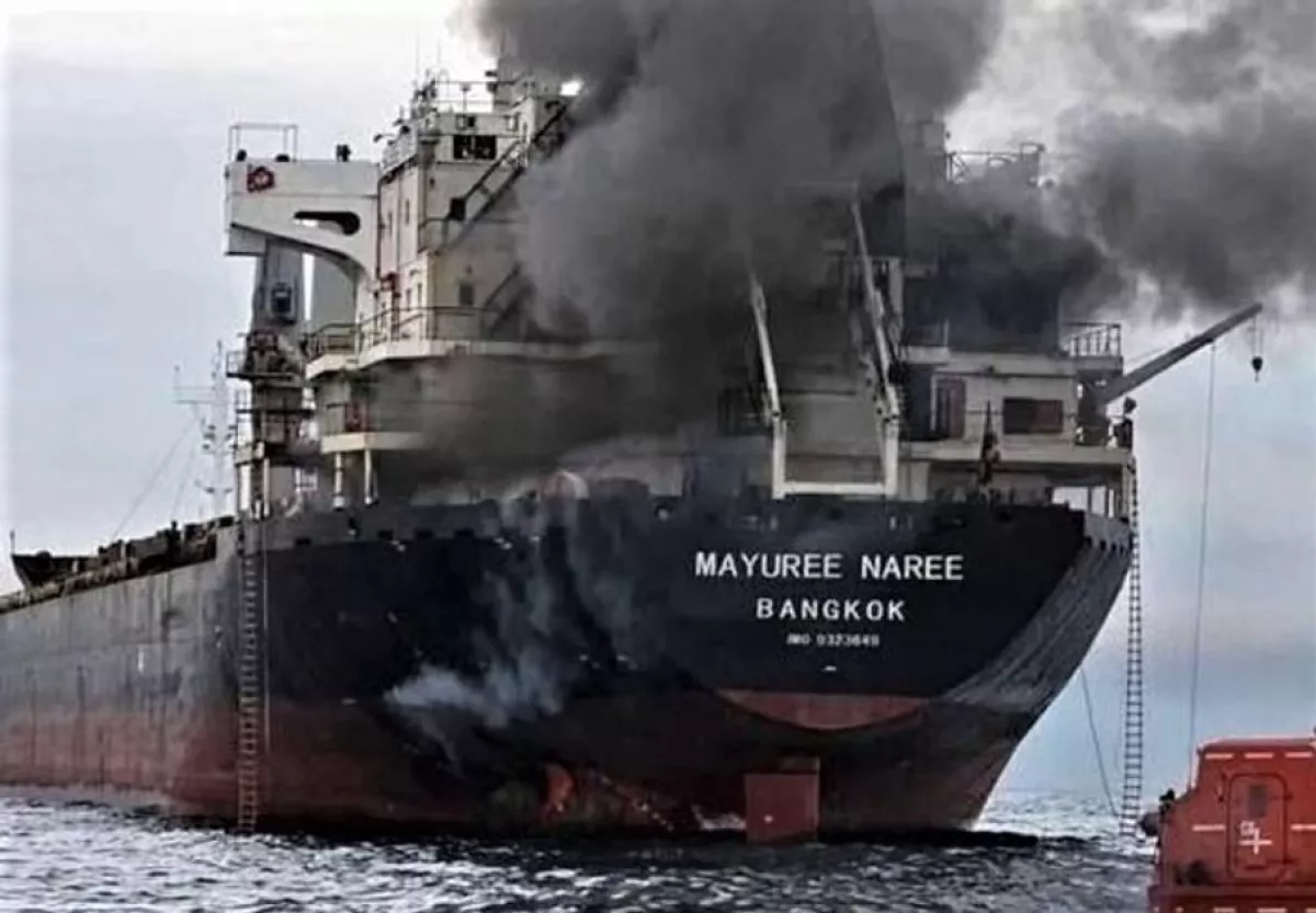 Сухогруз под флагом Таиланда Mayuree Naree — одно из шести судов, пострадавших от попадания снарядов в районе ключевого судоходного маршрута за последние два дня.