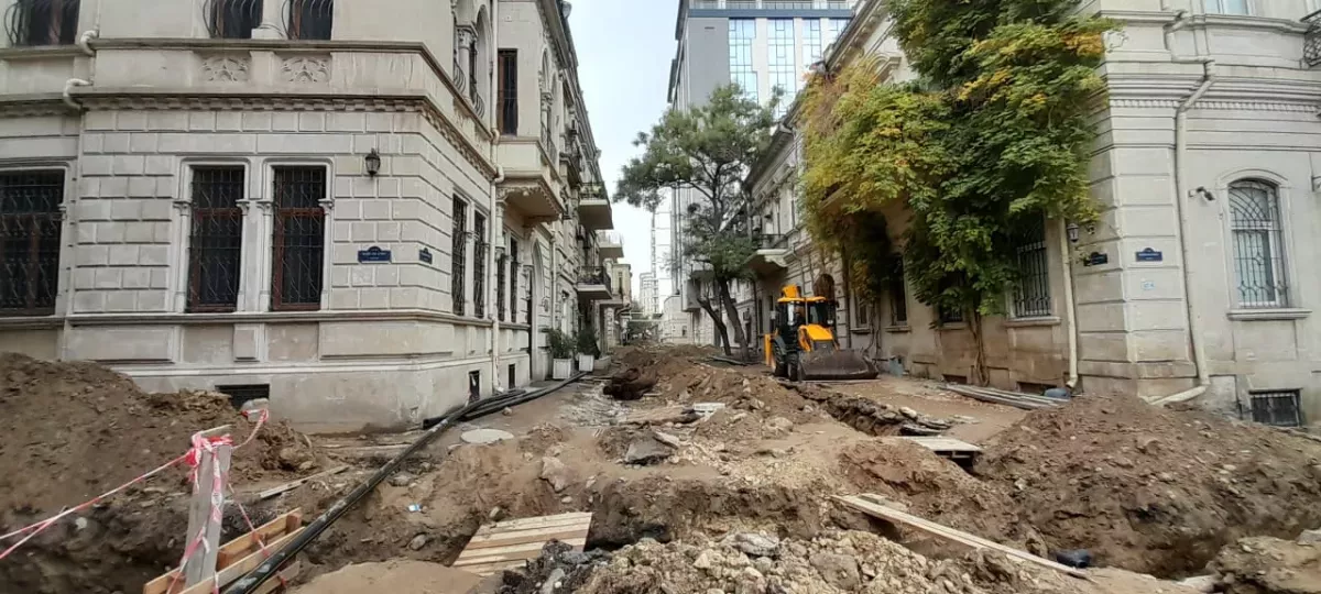 Оно и понятно – протяжённость улицы Ислама Сафарли более километра, а с учётом благоустроенных участков прилегающих улиц и ещё больше. И сейчас все метры улицы полны строительного оживления, тут много рабочих, меж которыми следят за порядком люди в пиджаках и при галстуках, судя по всему, местное начальство…