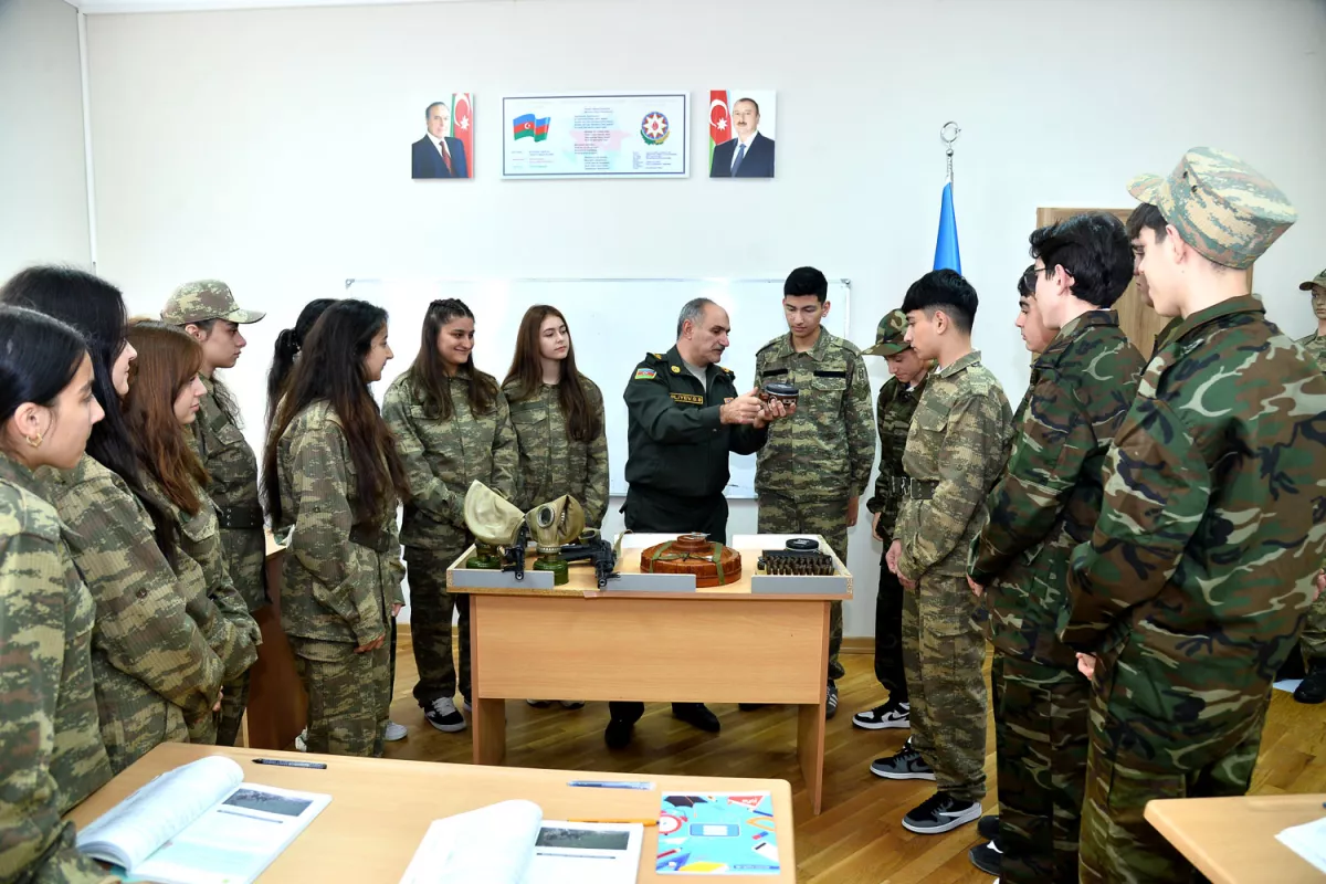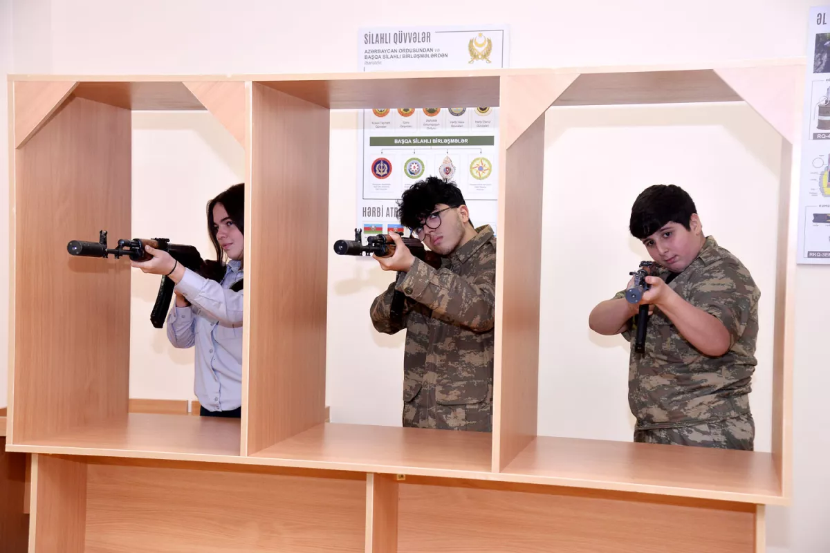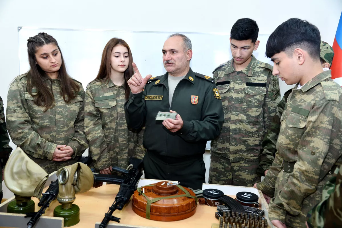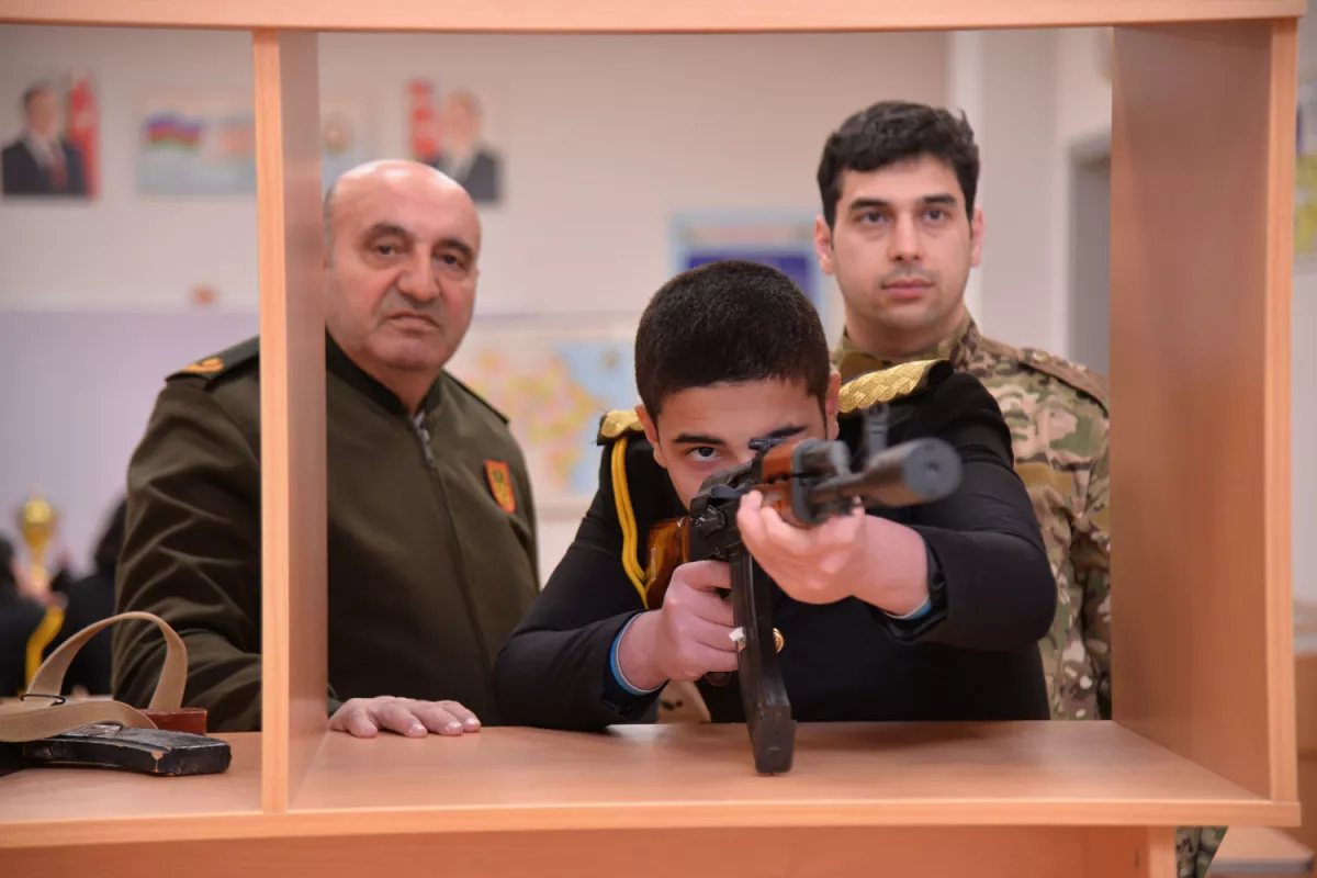 Управление образования города Баку поделилось фотосессией, запечатлевшей уроки начальной (допризывной) военной подготовки в столичных школах.