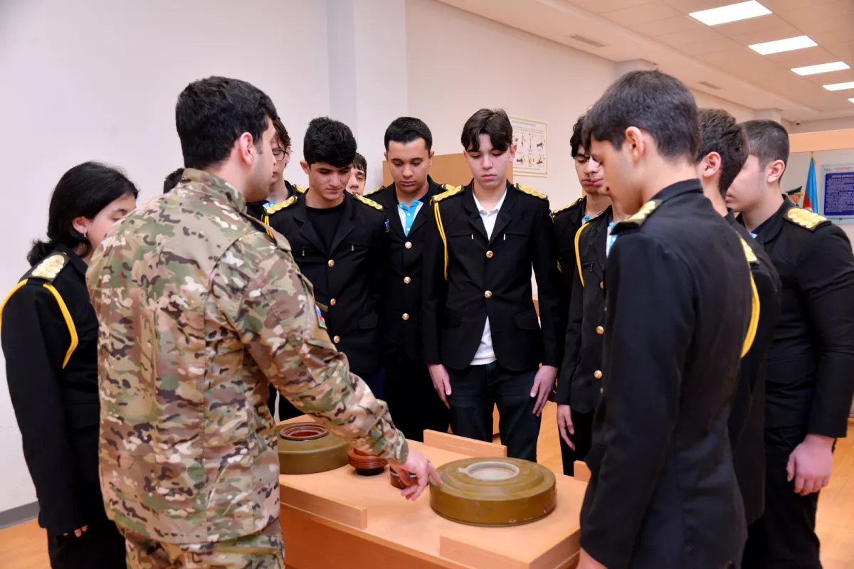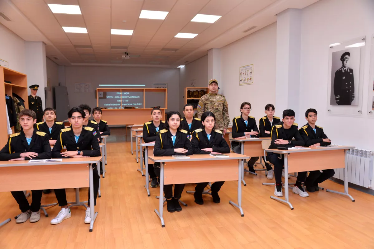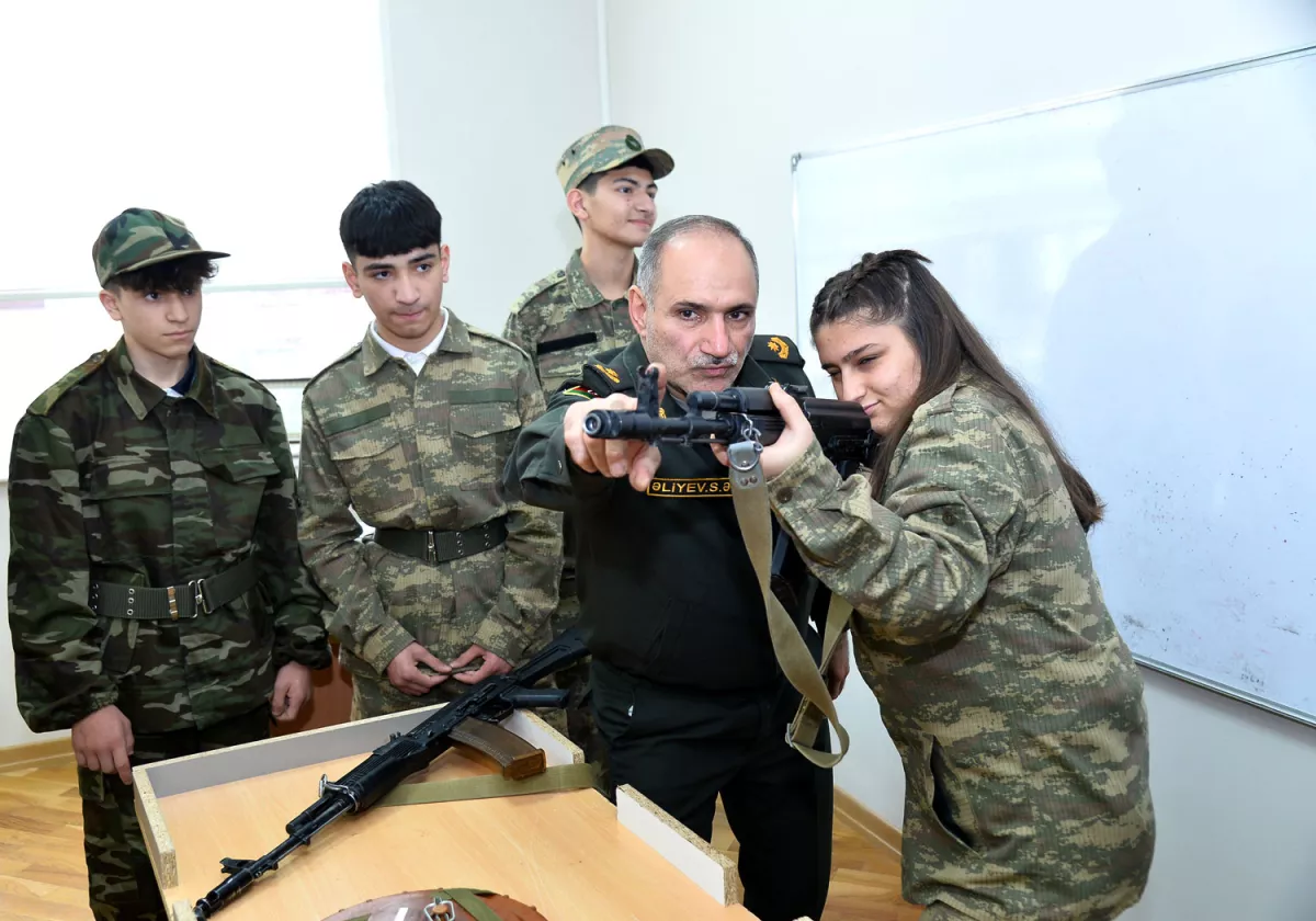Управление образования города Баку поделилось фотосессией, запечатлевшей уроки начальной (допризывной) военной подготовки в столичных школах.