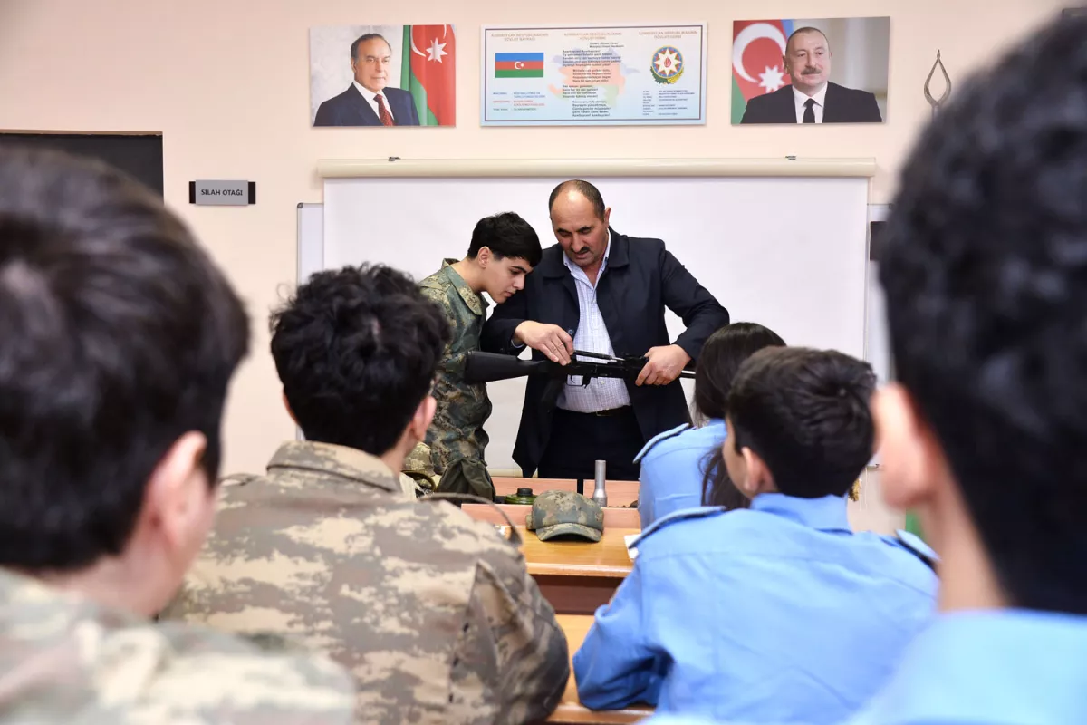 Как сообщает Caliber.Az, уроки НВП проводятся в школах преподавателями - заслуженными военными в отставке