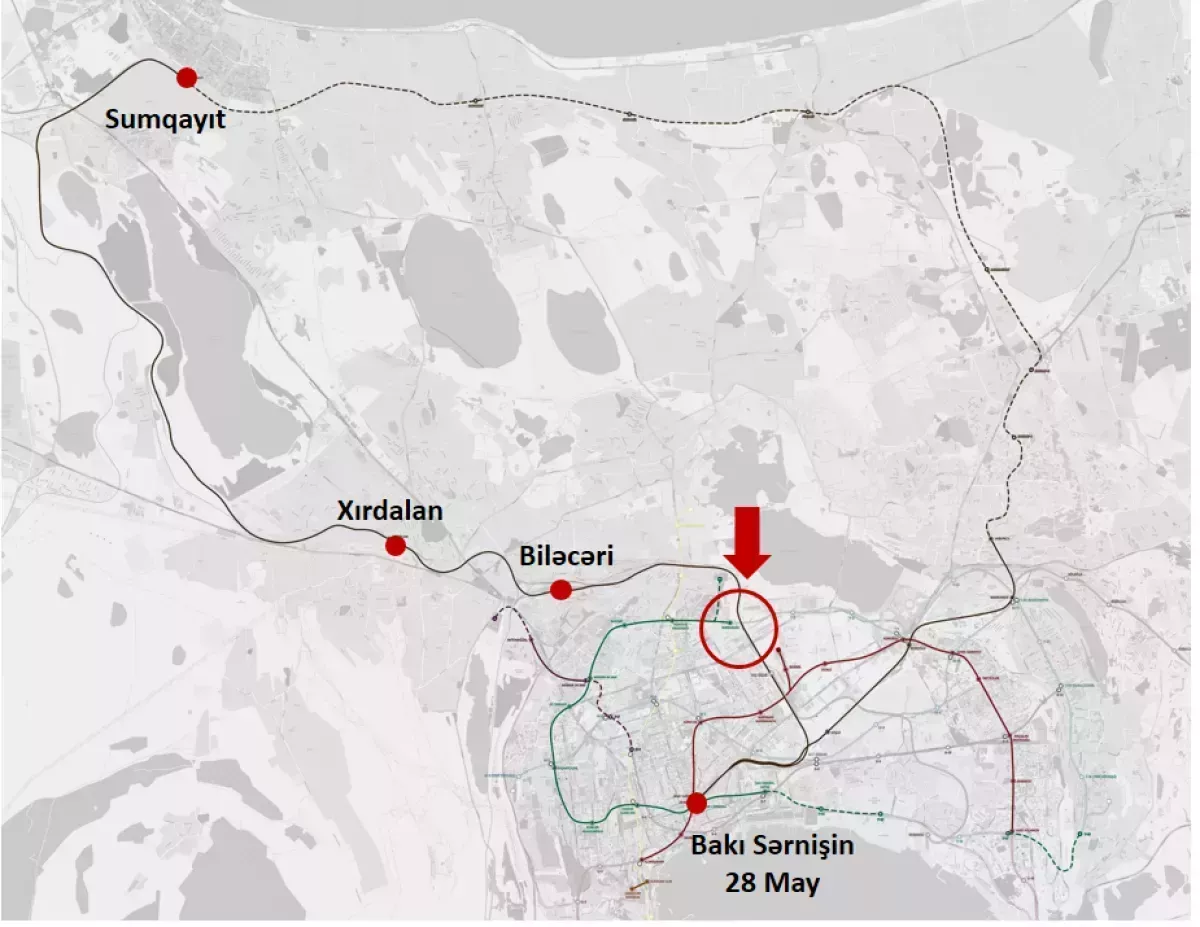 Также там показано продолжение «Фиолетовой линии» метро от «Б-4» до станции «Хатаи» и проспекта Бабека, и продолжение «Зеленой линии» от станции «Хатаи» вдоль проспекта 8 Ноября до станции «Ази Асланов-2». Всего будет открыто 10 новых станций метро – 6 на «Фиолетовой линии» и 4 на «Зеленой линии».
