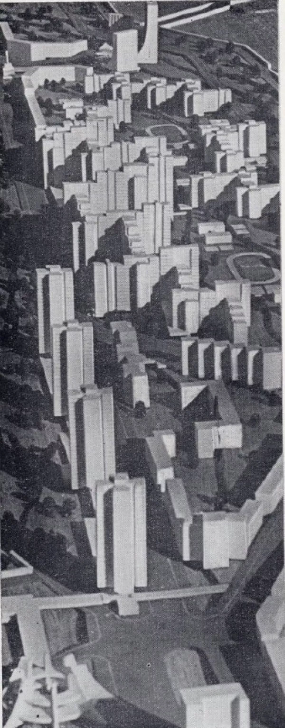 Тогда был объявлен всесоюзный конкурс, в котором приняли участие крупнейшие проектные институты СССР, и победил проект, предусматривающий застройку этой территории точечными одноблочными 24-этажными высотками.