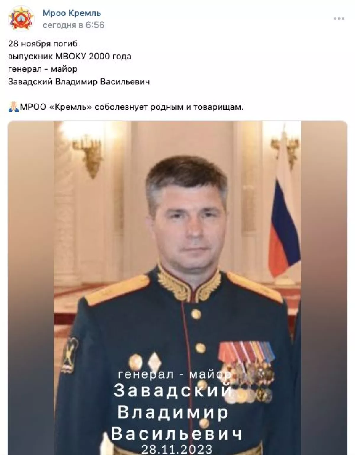 В 2024-м и 2025 годах погибли в том числе начальник войск РХБЗ Игорь Кириллов, заместитель начальника Главного оперативного управления Генштаба Ярослав Москалик, заместитель главнокомандующего ВМФ Михаил Гудков и начальник управления оперативной подготовки Генштаба Фанил Сарваров, убитый при взрыве автомобиля в Москве.