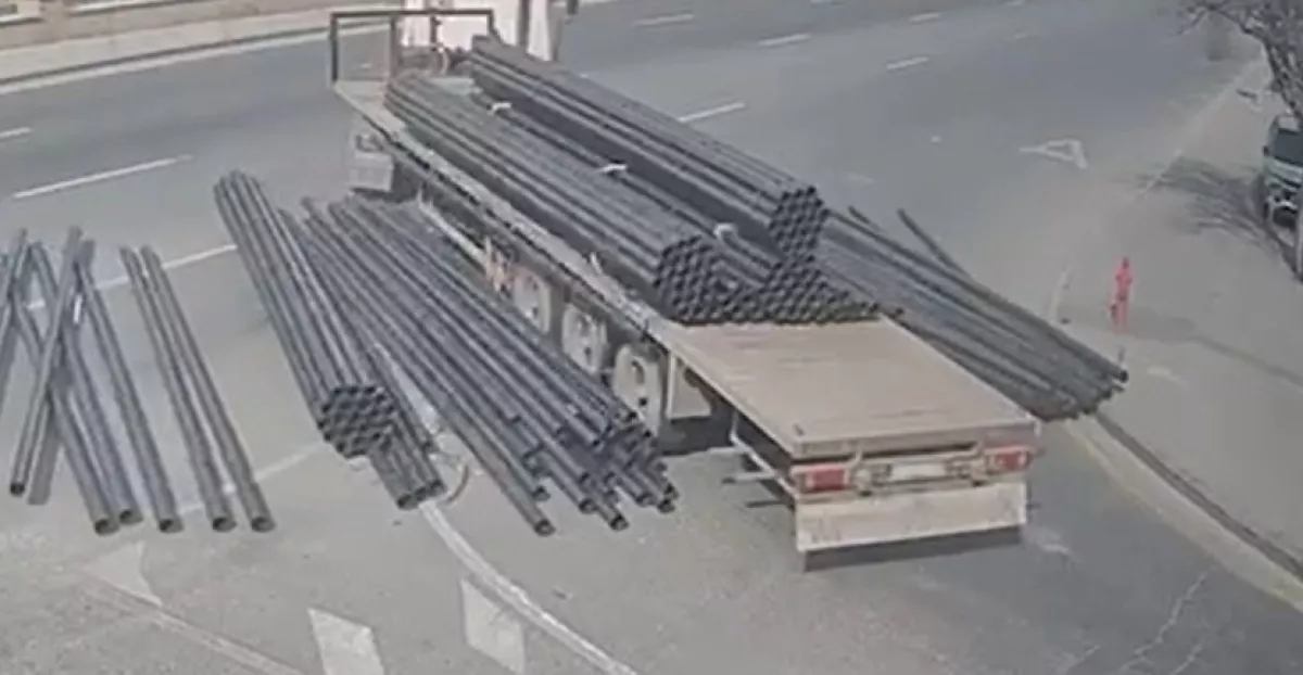Как сообщили Caliber.Az в пресс-службе Центра интеллектуального управления транспортом МВД АР, во время движения часть груза (железных труб) с грузовика упала на дорогу.