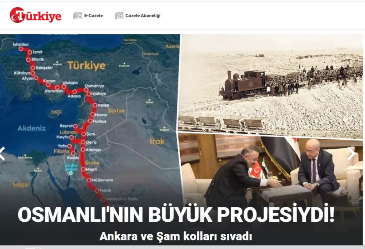 Как сообщает газета Türkiye, вопрос восстановления Хиджазской железной дороги стал одним из центральных в повестке встречи посла Турции в Дамаске Нуха Йылмаза с министром транспорта Сирии Ярубом Бедиром.
