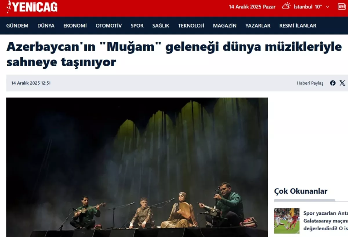 Турецкая газета Yeniçağ об азербайджанском мугаме
