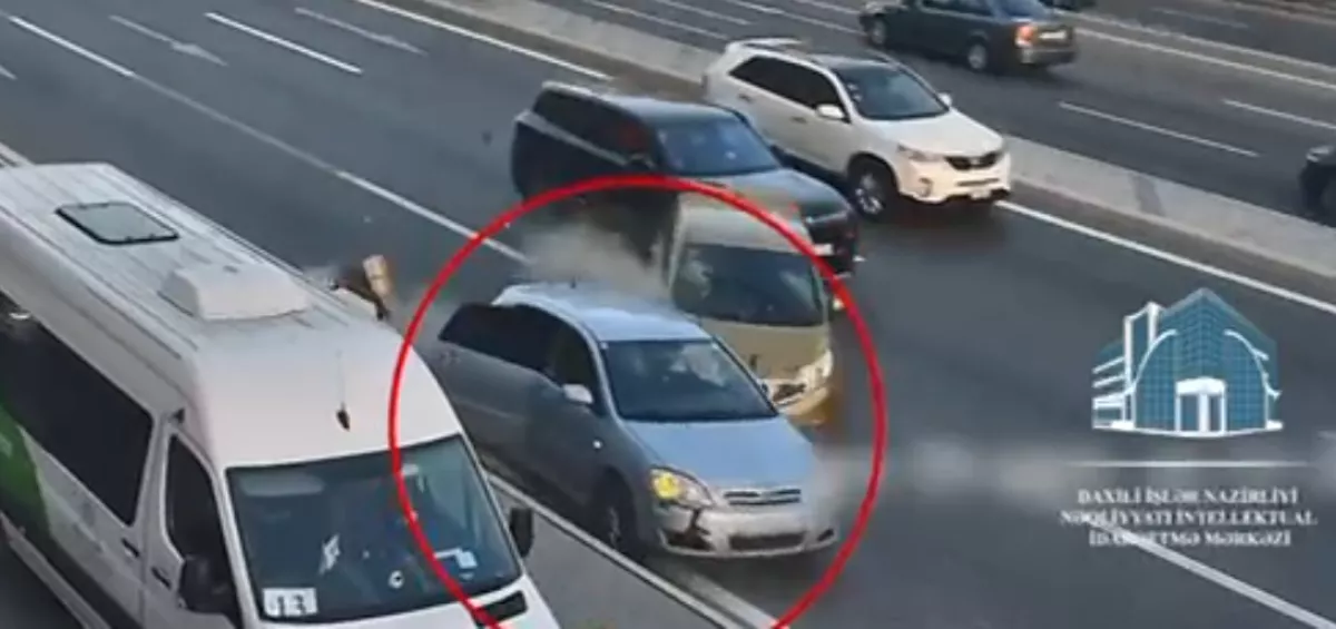 Данный инцидент, зафиксированный камерой видеонаблюдения Центра интеллектуального управления транспортом, произошёл на проспекте Гейдара Алиева в Наримановском районе столицы. Автомобиль, двигавшийся по главной дороге, столкнулся с автомобилем, стоящим на проезжей части дороги для высадки пассажиров.