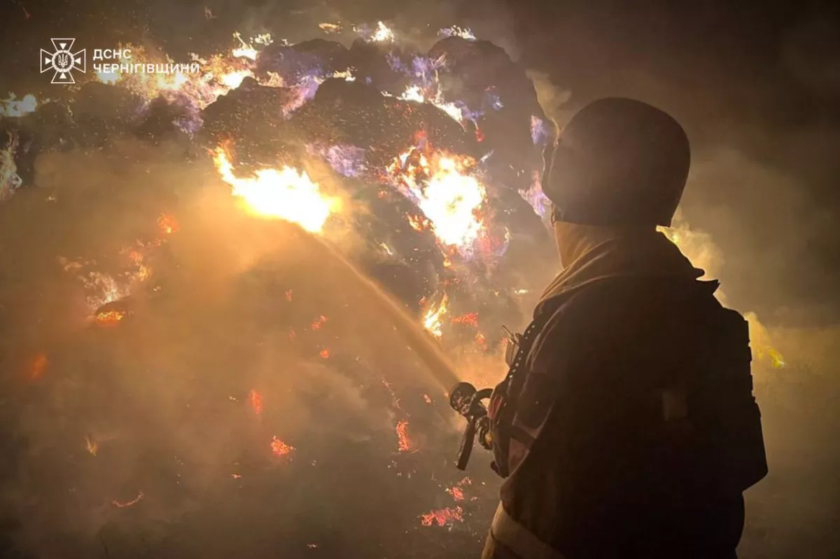 В Корюковском районе вследствие удара по территории фермерского хозяйства загорелись скирды соломы общей площадью около 1800 квадратных метров. К ликвидации пожара привлекались подразделения Государственной службы по чрезвычайным ситуациям и местная пожарная команда. Возгорание удалось полностью потушить.