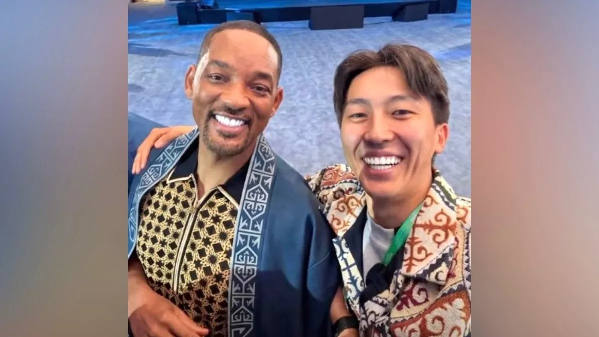 Казахстанский видеограф и тревел-блогер Дастан Мухамедрахим встретился с голливудским актером Уиллом Смитом на одном из международных мероприятий в Дубае и вручил ему казахский национальный чапан, сообщает Zakon.kz.