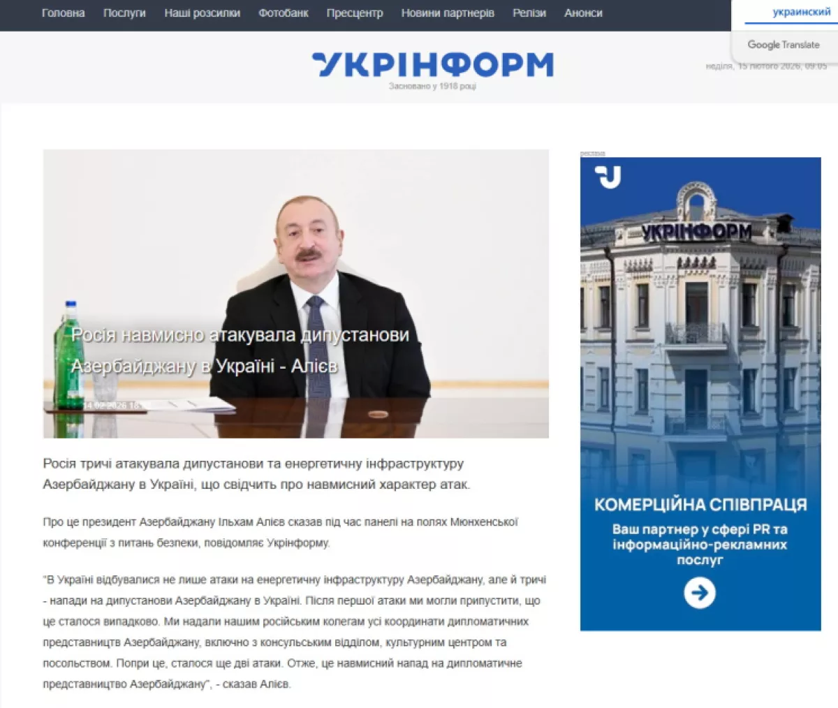 В публикациях также со ссылкой на заявление главы нашего государства пишется, что в Украине атакам подверглась не только энергетическая инфраструктура Азербайджана. В то же время посольство Азербайджана в Украине трижды становилось объектом нападений.