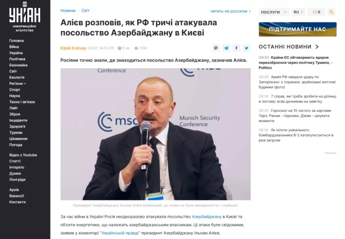 Участие Ильхама Алиева в Мюнхенской конференции по безопасности на страницах украинских СМИ ФОТО