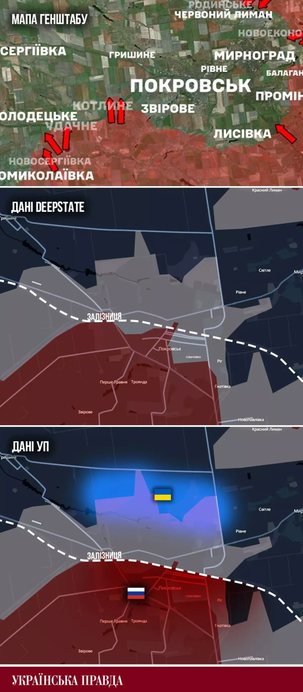Об этом сообщает «Украинская правда», ссылаясь на собственные источники. По данным издания, Покровск «в значительной степени потерян». Украинские позиции сохраняются лишь на северной окраине города, тогда как большая часть территории, расположенная ниже железной дороги, которая фактически делит Покровск пополам, находится под контролем российских войск. Линия боевого столкновения, по информации УП, пролегает почти по северной части города. При этом карта Генерального штаба по Покровскому направлению, как отмечает издание, отстаёт от реального положения дел примерно на месяц.