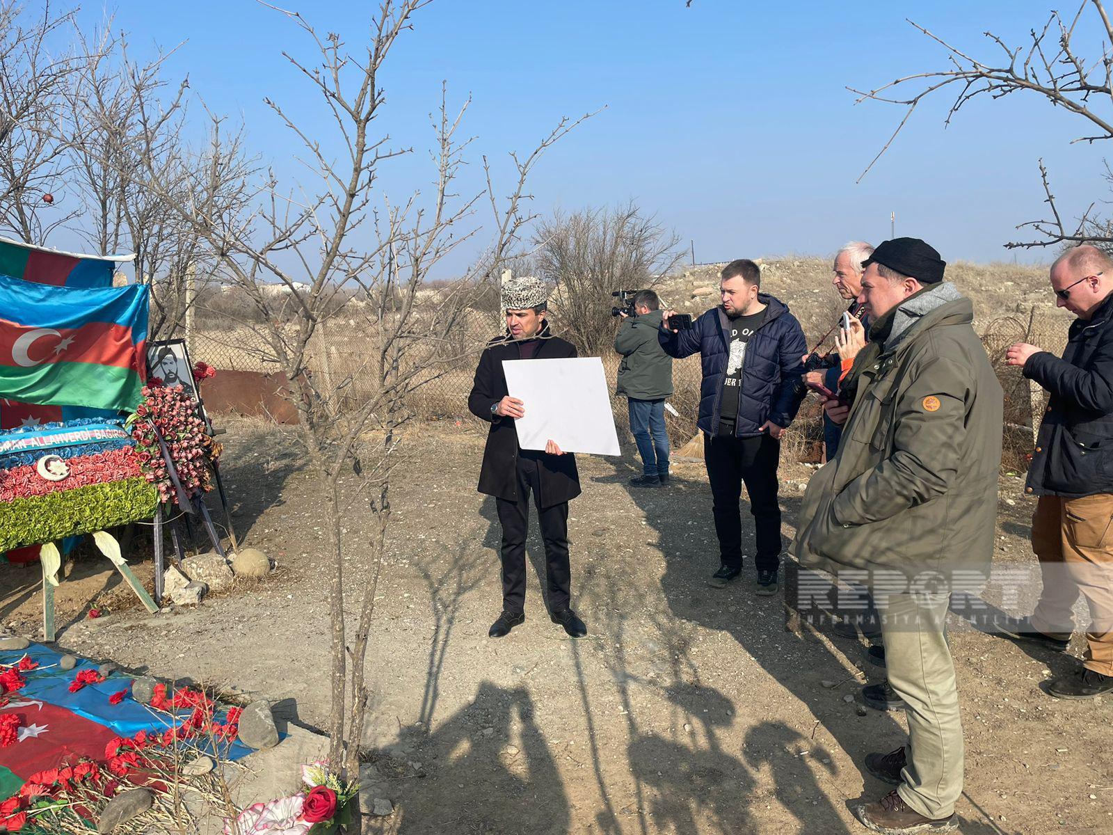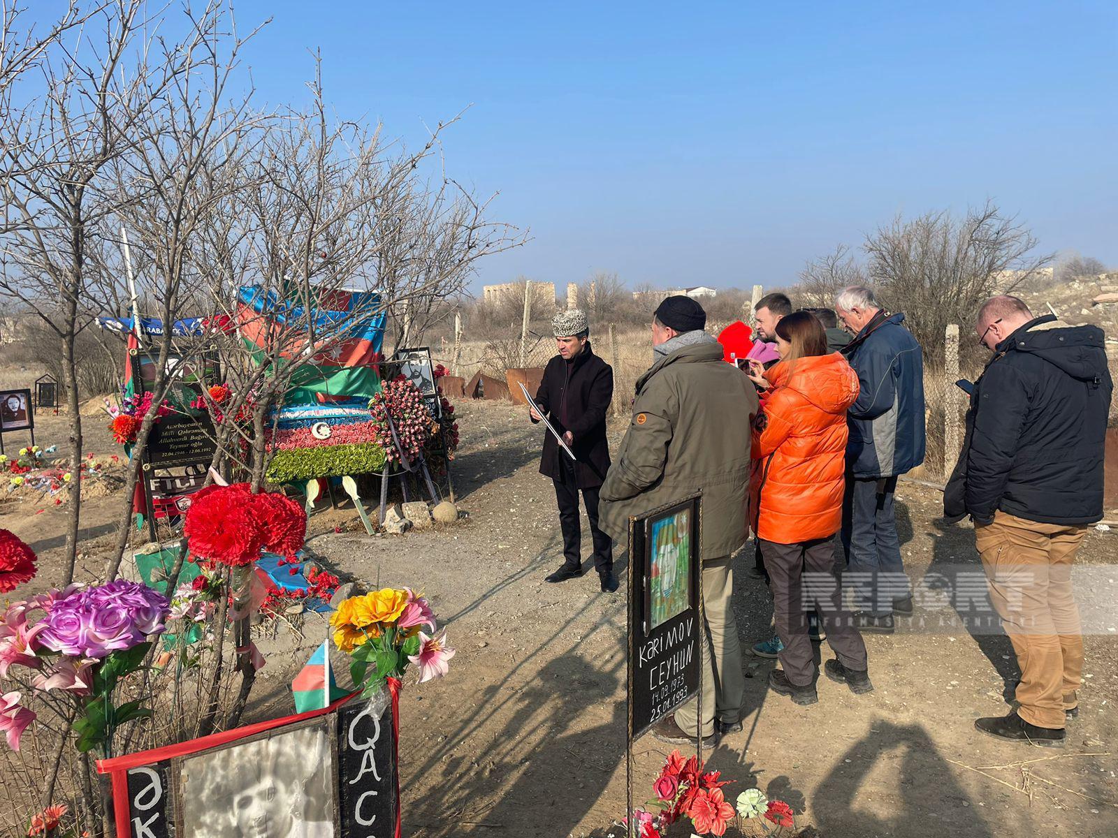 В ходе поездки в Агдамский район журналисты посетили Аллею шехидов Первой Карабахской войны, вернее то, что осталось от нее после вандализма армян, разрушивших могилы и поглумившихся над останками павших героев.