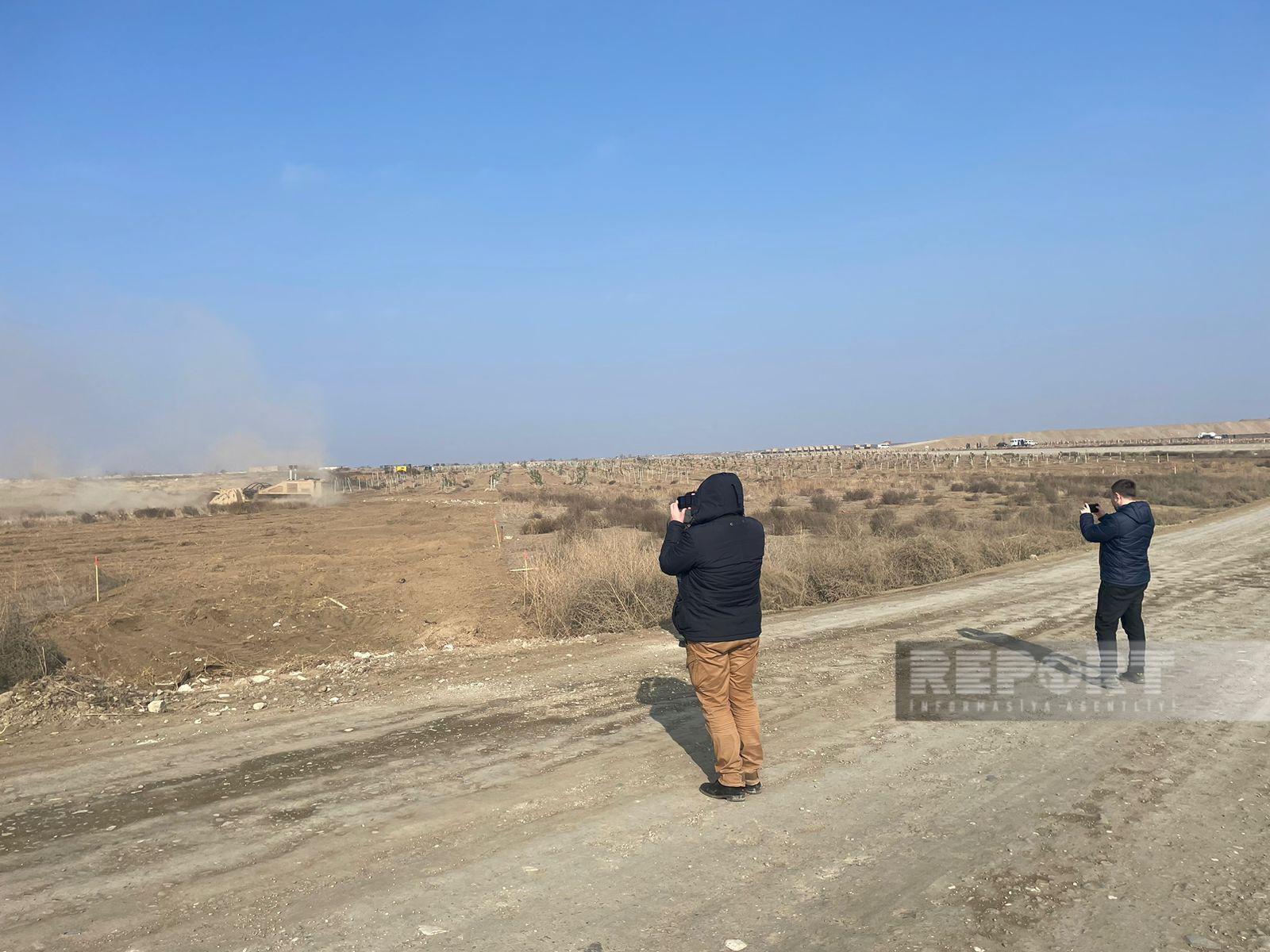 Украинские журналисты засняли кадры работы саперов азербайджанского Агентства по разминированию (ANAMA) и используемого им специального оборудования и техники. Эти материалы лягут в основу репортажей о ходе работ по очистке азербайджанских территорий от мин.