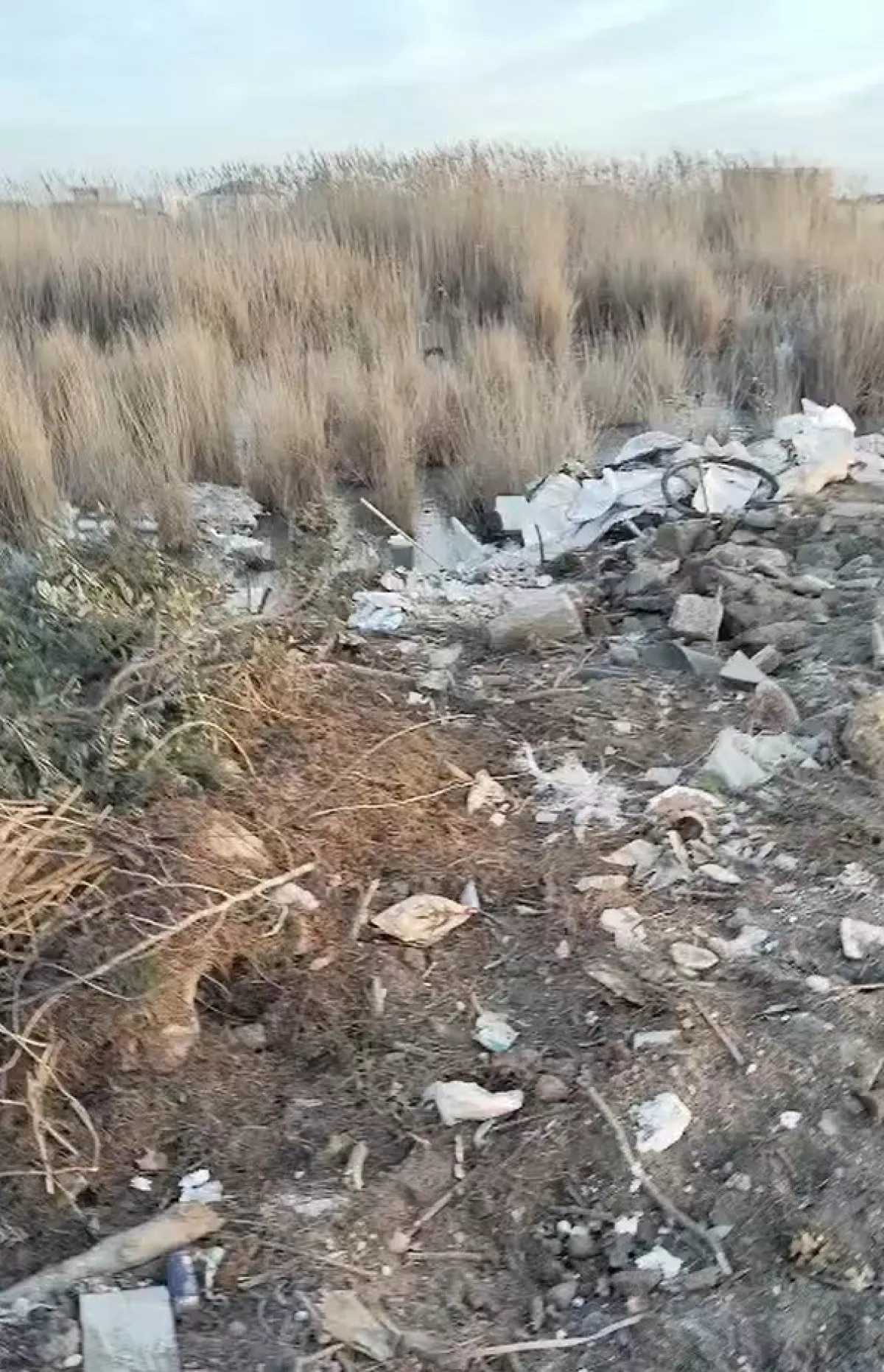 Жители поселка Бузовна Хазарского района Баку обратились в редакцию Caliber.Az с жалобой на то, что уникальное озеро недалеко от поселка (между ним и посёлком Шаган), на берегах которого обильно растут камыши, засыпается мусором.