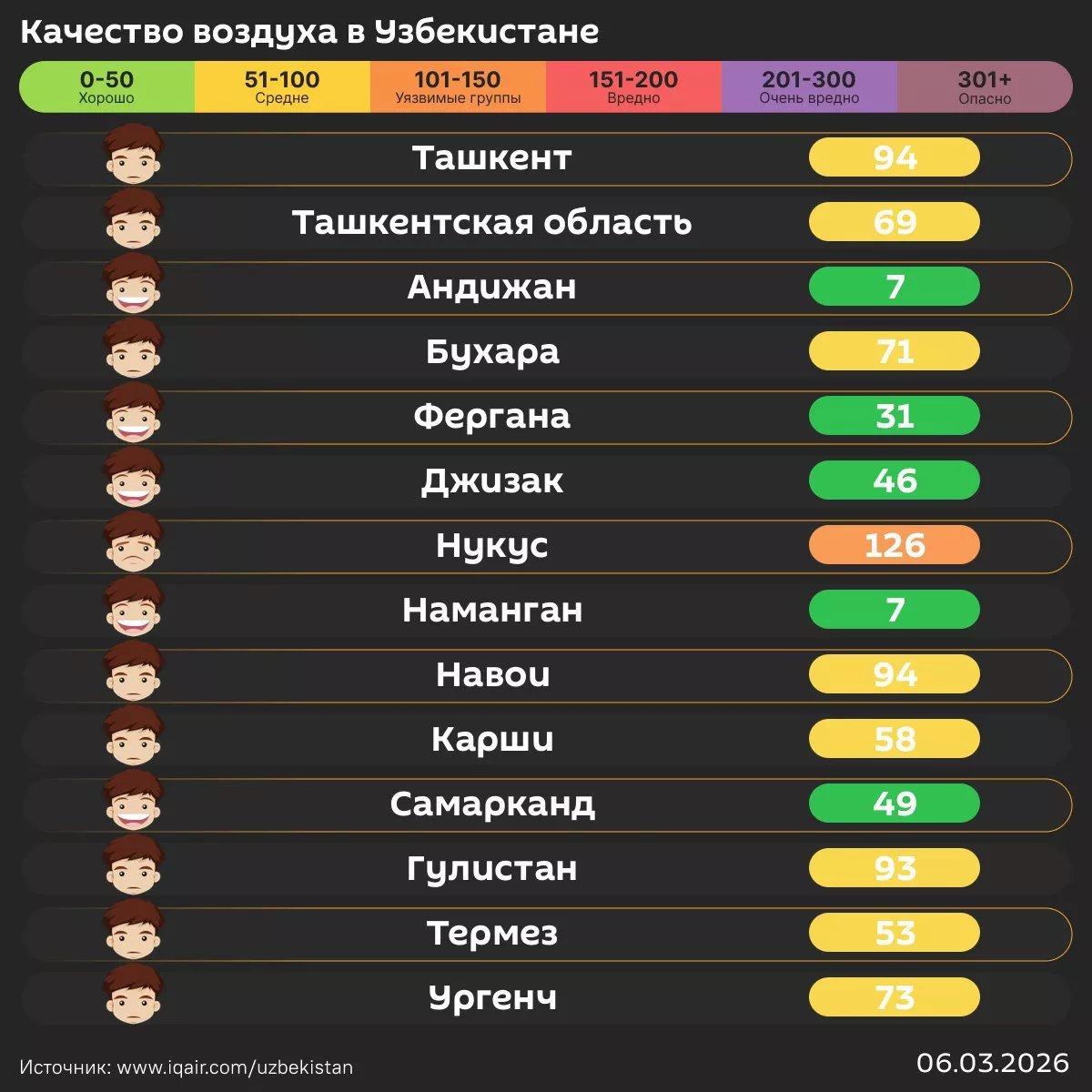 Воздух в Ташкенте сегодня «средний».