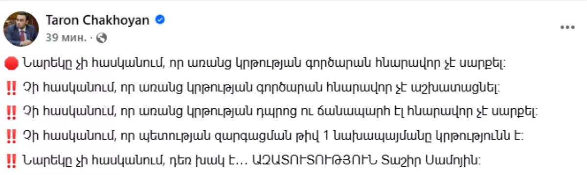 «Нарек (Карапетян — ред.) не понимает, что без образования невозможно построить завод.