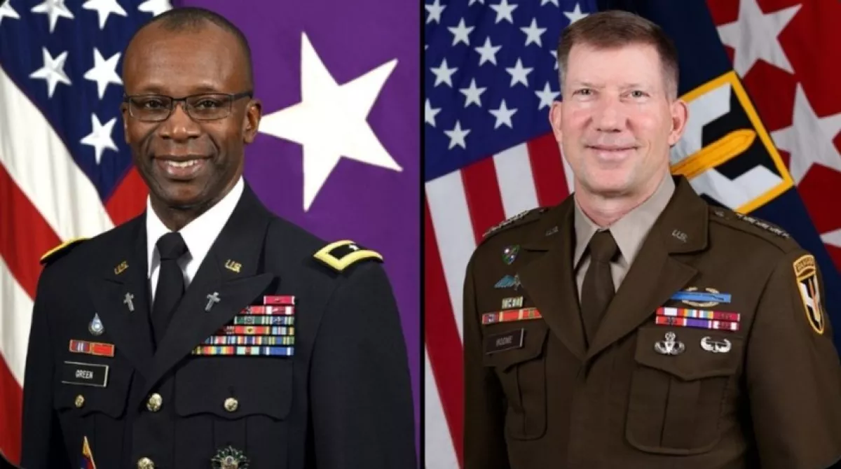 Генерал-лейтенант Дэвид Ходн занимал должность заместителя начальника штаба Сухопутных войск США по операциям, планам и обучению, а генерал-майор Уильям Грин-младший — начальника капелланов Сухопутных войск США.