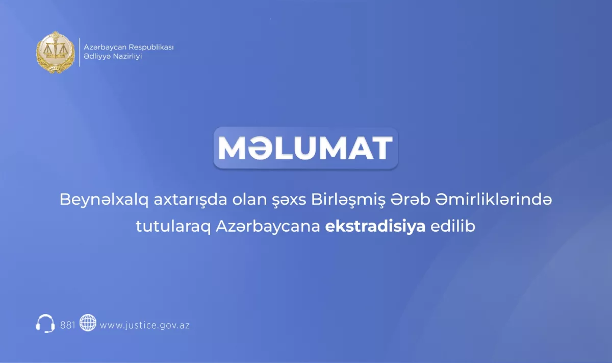 Как сообщили Caliber.Az в пресс-службе Министерства юстиции АР, на основании ходатайства азербайджанской стороны Объединёнными Арабскими Эмиратами (ОАЭ) было принято решение об экстрадиции гражданина Азербайджана Турала Акиф оглу Самедзаде в соответствии с требованиями Конвенции «О правовой помощи и правоотношениях по гражданским, семейным и уголовным делам».